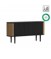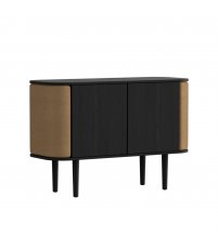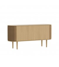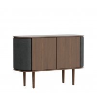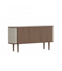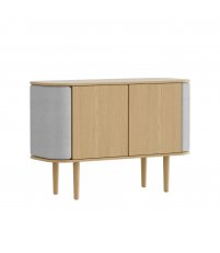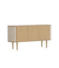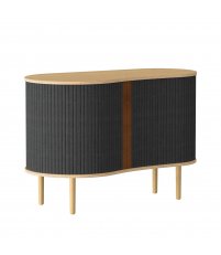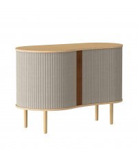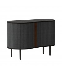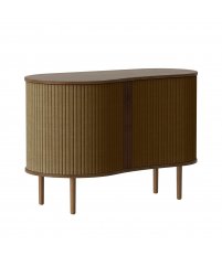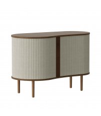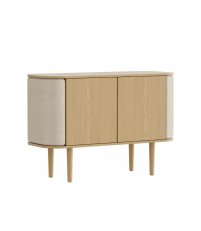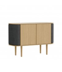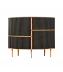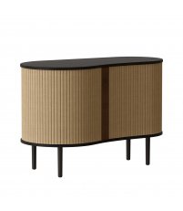Poza produktem typowo dedykowanym do przechowywania alkoholi i trunków, oraz kieliszków i karafek, w naszej ofercie znajdziesz też designerskie, nowoczesne i nieszablonowe komody, które mogą również pełnić rolę barku na alkohole. „Barki” te w swej owalnej konstrukcji przypominającej nerkę, są bardzo intrygujące, bowiem okala je w całości roleta wykonana z mocnej tkaniny poliestrowej, wykończonej na krawędziach elementami z eco skóry. Roleta tekstylna przesuwa się lekko i pewnie. Całość wykonana jest bardzo solidnie i jest nade stabilna, wykonana z nieprzeciętną dbałością o szczegóły jej wykończenia.Materiał wykonania to lite drewno dębowe i bukowe, fornir laminowany oraz mocne tworzywo tekstylne. Ten barek-komoda utrzymują cienkie, drewniane nogi, co nawiązuje do skandynawskiego, nordyckiego stylu.