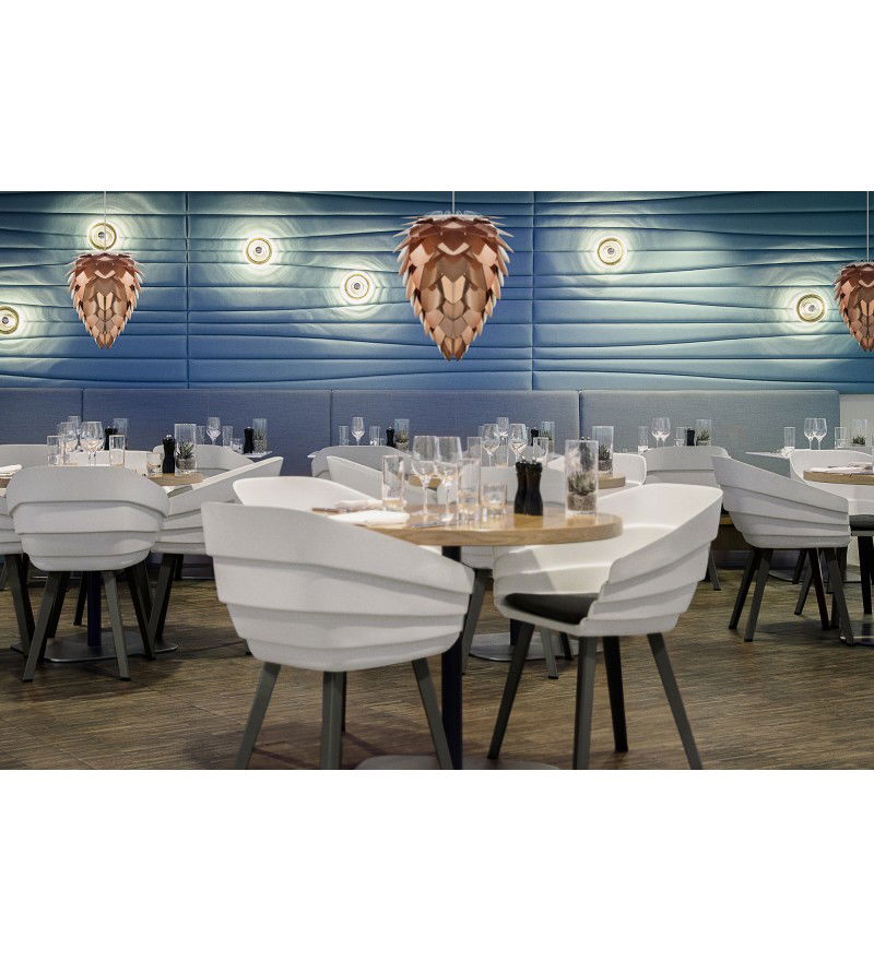 Wszystkie produkty UMAGE (dawniej VITA Copenhagen) są projektowane z prostotą i rozpoznawalnością kształtów. Ideą jest oferowanie produktów w przystępnej cenie, więc dostarczane są rozłożone, do samodzielnego montażu. Ich projekt jest jednak na tyle przemyślany, że zajmuje to maksymalnie kilkanaście minut i nie wymaga użycia narządzi ani kleju. Każdy z listków lampy jest biały z jednej strony i miedziany z drugiej. Możesz dowolnie zdecydować, który z kolorów ma być widoczny.