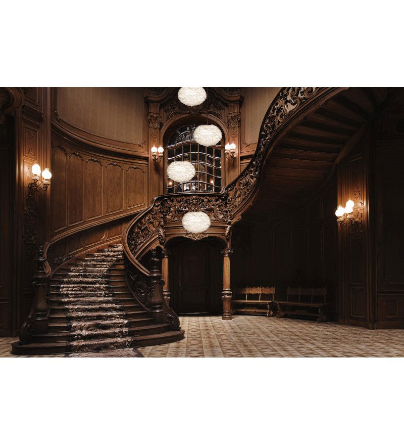 Utrzymanie lampy w czystości jest bardzo proste za pomocą suszarki do włosów. Eos Large łatwo montuje się praktycznie na każdym zawieszeniu, lampa dostarczana jest w ozdobnym pudełku.