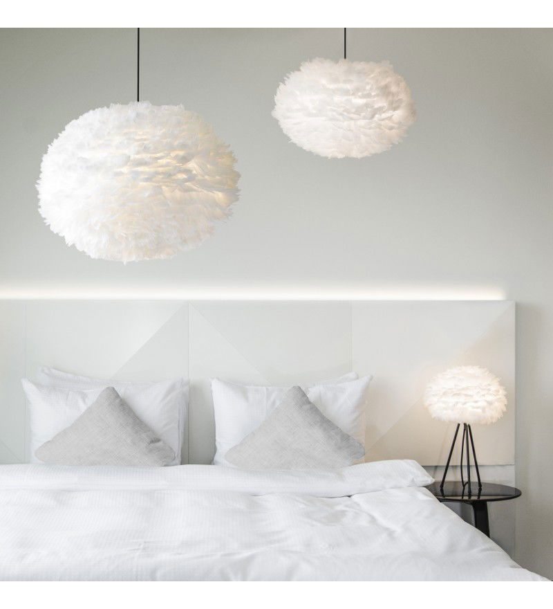 Lampa Eos Large uosabia wszystkie najlepsze wartości marki UMAGE (dawniej VITA Copenhagen). Jej piękny owalny kształt mierzy 65 cm średnicy i 40 cm wysokości. Jest wykonana z autentycznych ptasich piór, z których każde ręcznie, starannie umieszczono na papierowym rdzeniu. Emituje przytulny i przyjemny blask, ponieważ żarówka jest osłonięta, Eos jest idealna do powieszenia nad stołem, w przedpokoju, w sypialni lub jakiegokolwiek innym miejscu, w którym nie chcesz być oślepiony przez źródła światła.