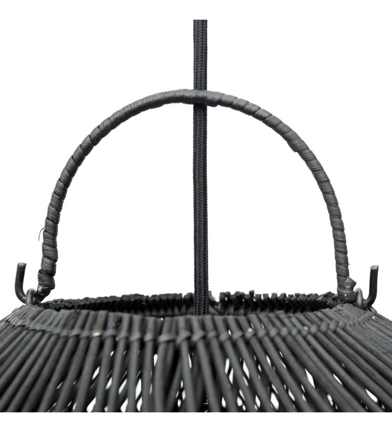 Abażur jest dostępny w 2 rozmiarach (M oraz XXL) oraz w 2 kolorach: czarnym i naturalnym. Kolor naturalny jest bardzo uniwersalny, ale jeśli marzysz o innej barwie możesz spryskać rattan odpowiednią farbą w spray’u.
