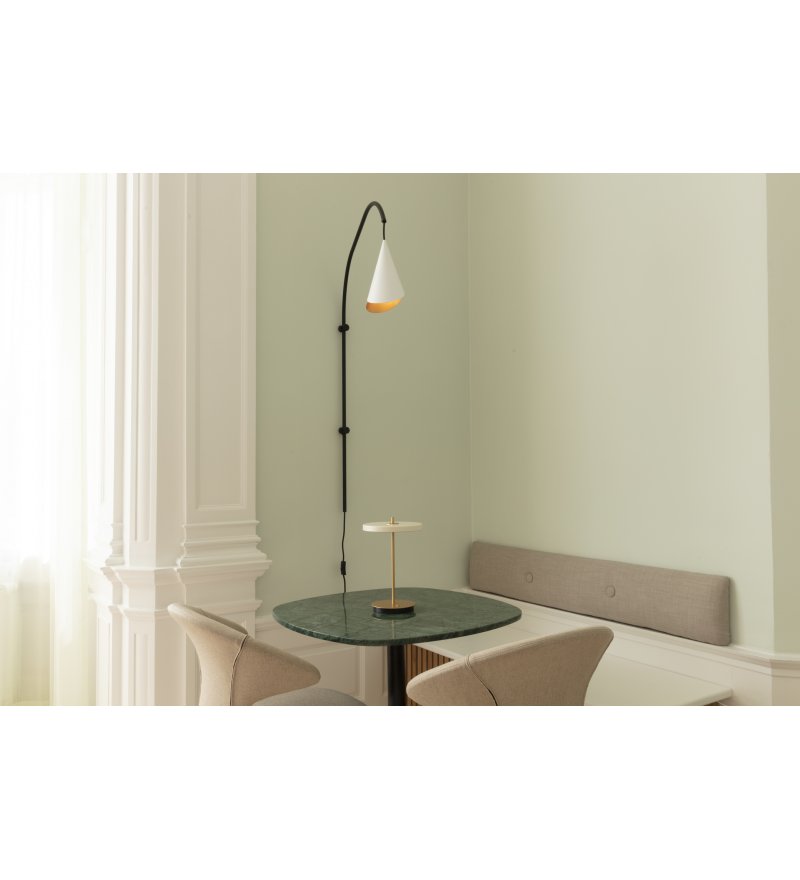 Klosz lampy Cornet może być także zastosowany jako lampa ścienna po połączeniu z dowolnym ramieniem Willow UMAGE.