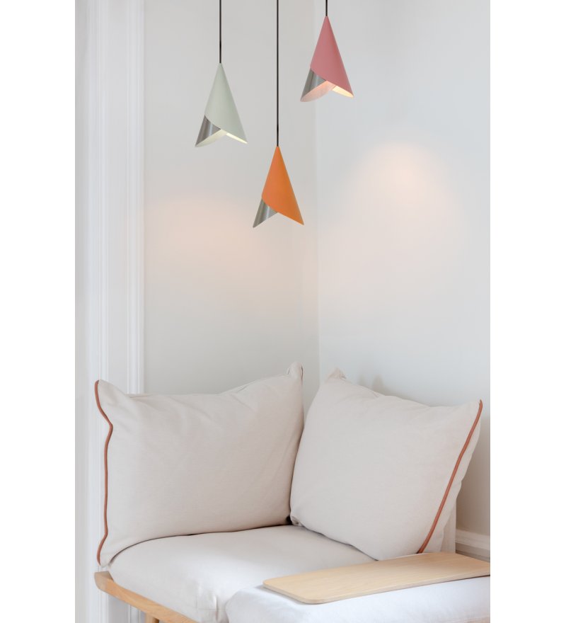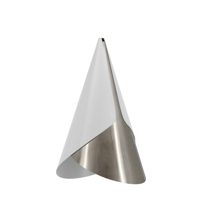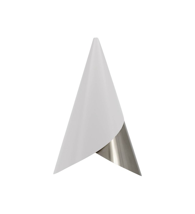 Lampa Cornet UMAGE opiera się na niezwykle banalnym pomyśle. Dwa niezależne metalowe "rożki" w różnych kolorach nakładane są na przewód z oprawką żarówki i w ten sposób powstaje ta intrygująca forma. Asymetryczność każdego z elementów pozwala na zabawę z ostatecznym wyglądem dzięki obracaniu ich na kablu. Pozwala to także w pewnym zakresie kierować strumieniem światła. Poszczególne kolory można także zamienić kolejnością, aby eksponować bardziej stal lub kolor. Cornet to prosty, lecz pełen uroku, ciepła i fantazji produkt.