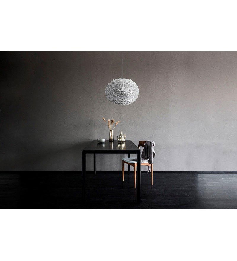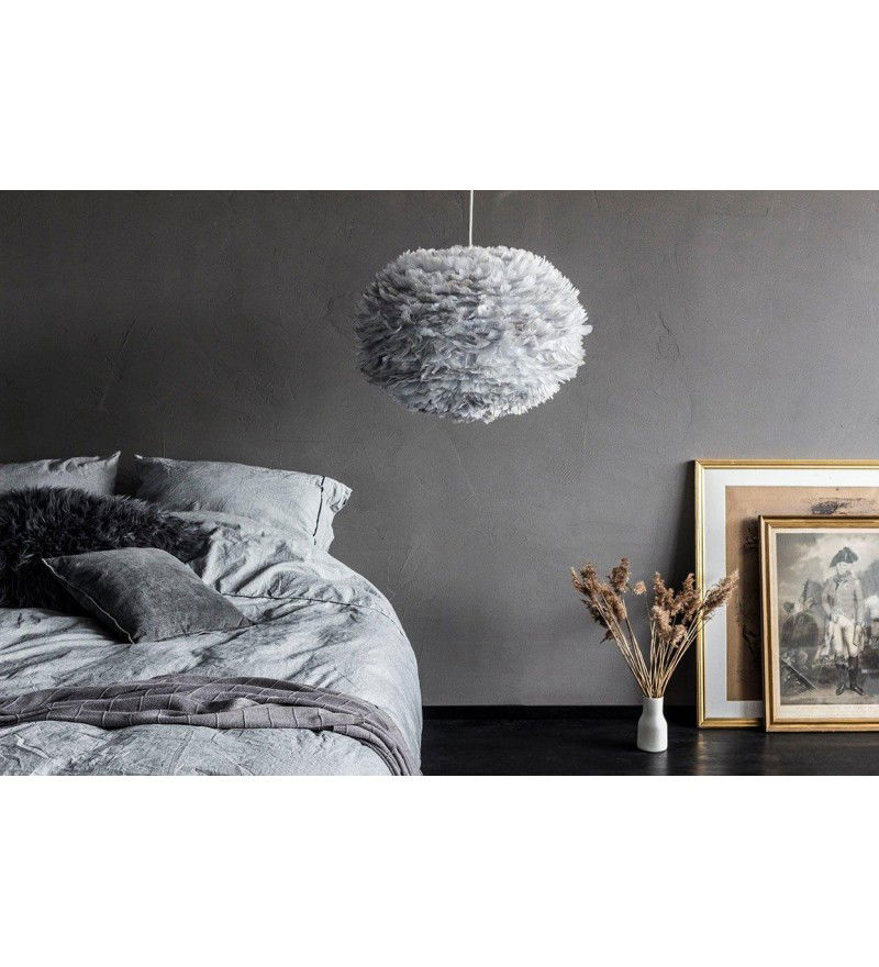 Lampa Eos Large Light Grey uosabia wszystkie najlepsze wartości marki UMAGE (dawniej VITA Copenhagen). Jej piękny owalny kształt mierzy 65 cm średnicy i 40 cm wysokości. Jest wykonana z autentycznych ptasich piór, z których każde ręcznie, starannie umieszczono na papierowym rdzeniu. Emituje przytulny i przyjemny blask, ponieważ żarówka jest osłonięta - dodatkowo pióra pofarbowano na jasnoszary kolor, co dodatkowo potęguje klimatyczny nastrój. Eos Large Light Grey jest idealna do powieszenia nad stołem, w przedpokoju, w sypialni lub jakiegokolwiek innym miejscu, w którym nie chcesz być oślepiony przez źródła światła. Kolekcję lamp EOS Light Grey zainspirowano surowymi, nordyckimi krajobrazami.