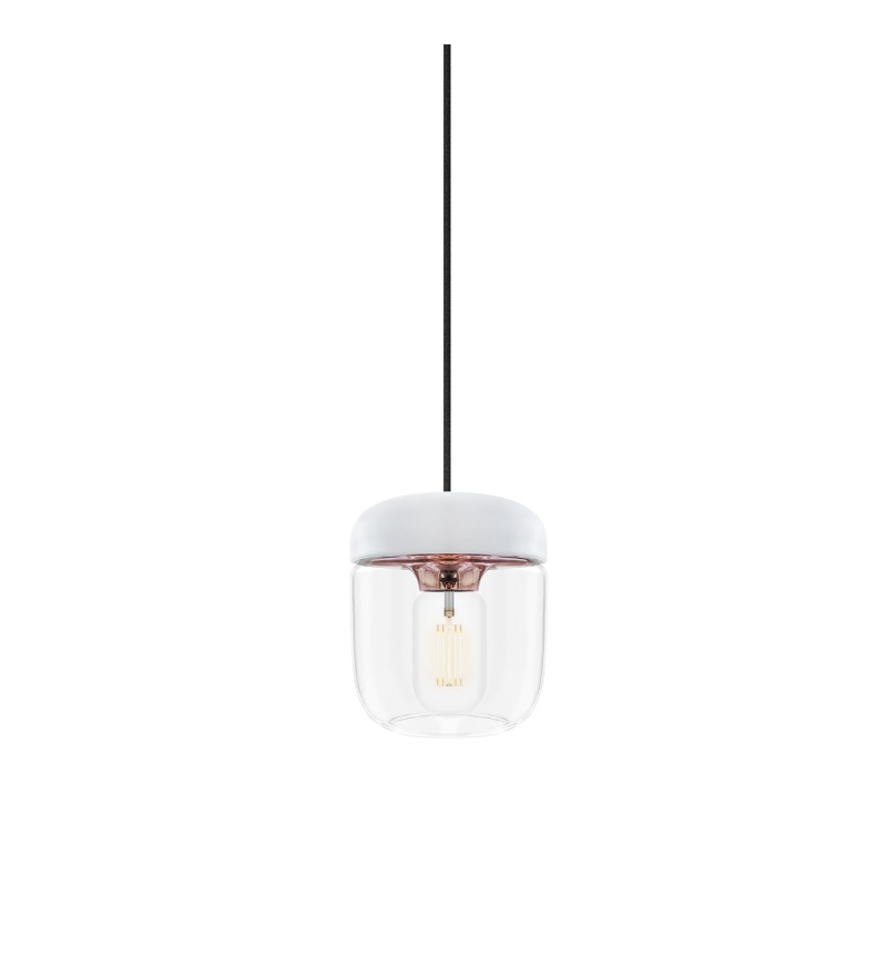 Jaka inspiracja stoi za projektem lampy Acorn UMAGE (dawniej VITA Copenhagen)? Jacob Rudbeck sięgnął po sprawdzone źródło - naturę! Spacer cichym lasem, wdech rześkiego powietrza, dźwięk szeleszczących liści... a pod stopami delikatne żołędzie leżące u podstawy dumnych dębów. Mając w pamięci ten obraz stworzył kolekcję lamp wiszących Acorn. Ich drobna, filigranowa wręcz forma łączy w niesłychanie subtelny sposób kilka materiałów. Delikatna linia szklanego klosza, jego silikonowe zwieńczenie w matowej bieli i kontrastujące, eleganckie wnętrze z lustrzanego metalu. Podążając za trendami do wyboru w jednym z kilku modnych odcieni. Tak zrównoważony projekt nie mógł powstać inaczej.