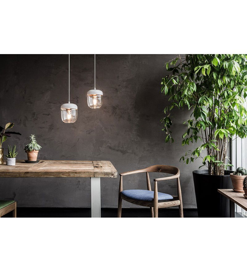 Lampa Acorn, choć drobna, gra główne skrzypce we wnętrzu. Wyeksponowana żarówka daje równomierne, nastrojowe światło. A gdy zastosujesz kilka tych lamp powieszonych obok siebie lub w kaskadzie - otrzymasz imponujący, jasny żyrandol.