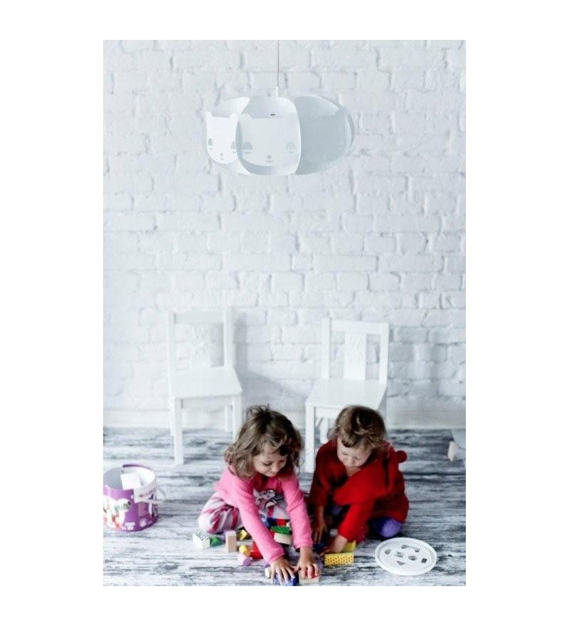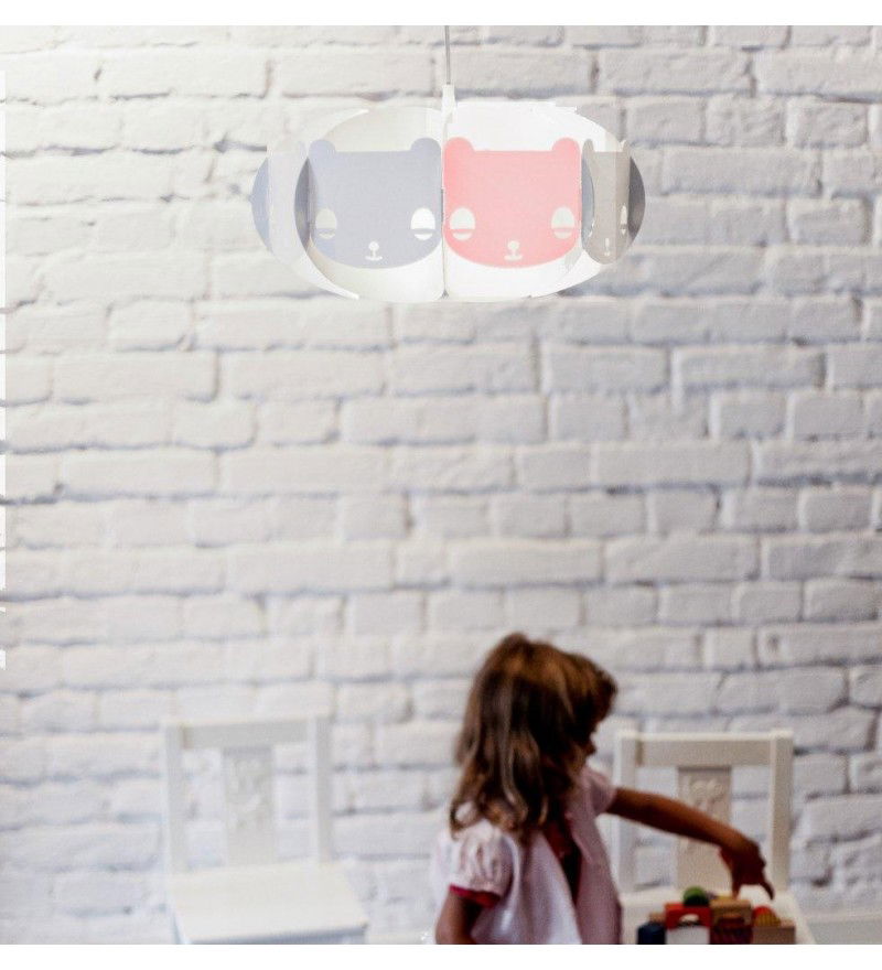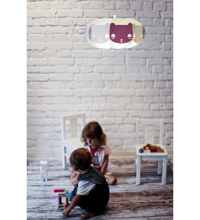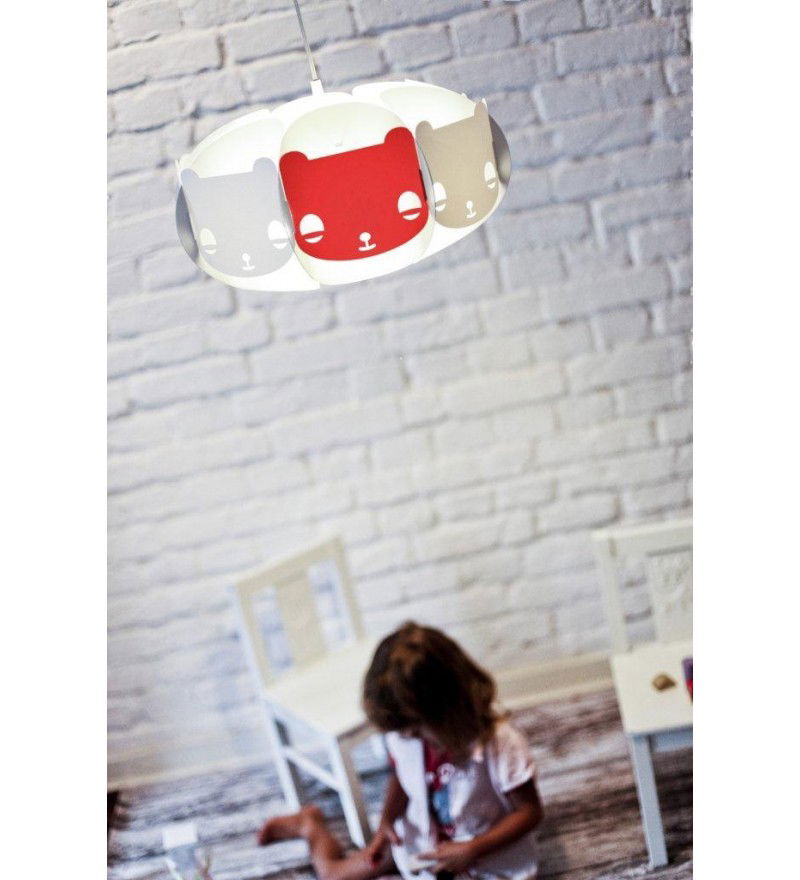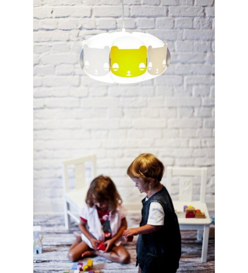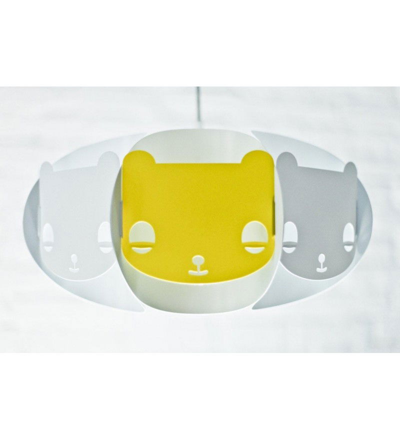 Dzieci lubią misie... Mishka to lampa-przyjaciel, dedykowana dla dzieci. Występuje w wersji białej, ale zawiera jeden dodatkowy element w kolorze, który można opcjonalnie umieścić w lampie. Abażur pasuje zarówno do lamp stojących i sufitowych.
