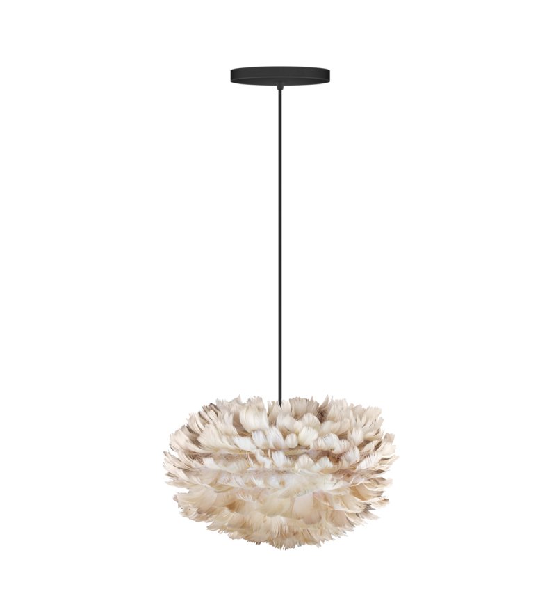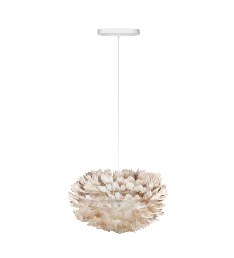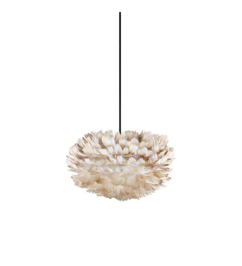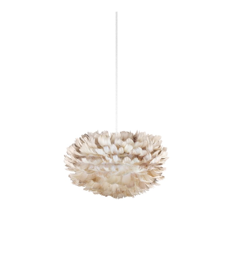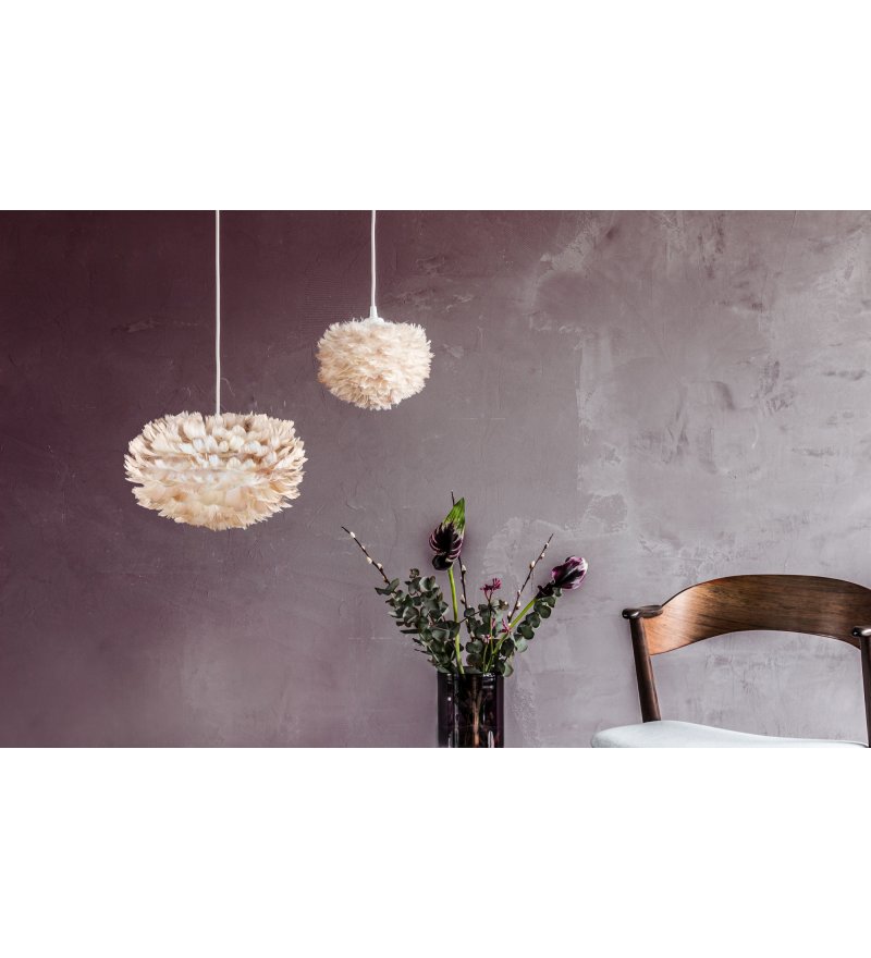 Lampa Eos mini light brown to drobna lampa z rodziny EOS UMAGE (dawniej VITA Copenhagen). Jej piękny, filigranowy kształt mierzy około 35 cm średnicy i 20 cm wysokości. Jest wykonana z autentycznych ptasich piór, z których każde ręcznie, starannie umieszczono na papierowym rdzeniu. Emituje przytulny i przyjemny blask, ponieważ żarówka jest osłonięta dając klimatyczny nastrój - dodatkowo pióra pofarbowano na jasnobrązowy kolor, co dodatkowo potęguje klimatyczny nastrój. Eos mini light brown jest idealna do powieszenia w grupie w przedpokoju, w sypialni lub jakimkolwiek innym miejscu, w którym chcesz stworzyć subtelny nastrój.