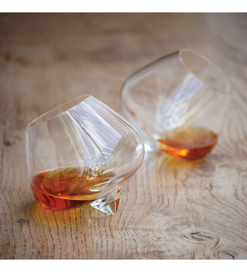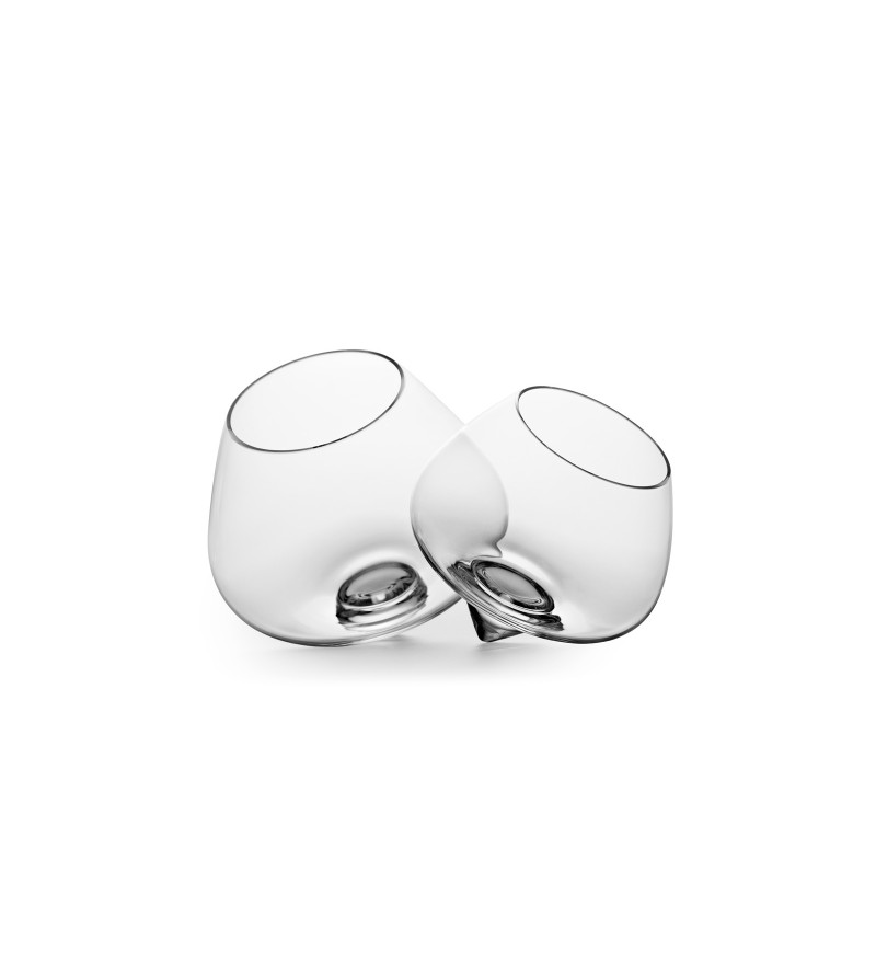 Zestaw dwóch kieliszków do koniaku, whiskey czy innych alkoholi duńskiej marki Normann Copenhagen. Ich forma to przełamanie wszelkich konwencji. Kształt kieliszków zaprojektowano tak, by doskonale eksponował bukiet szlachetnych trunków, a jednocześnie zaskakiwał. Nietypowa nóżka sprawia, że kieliszek będzie subtelnie poruszał się na stole.