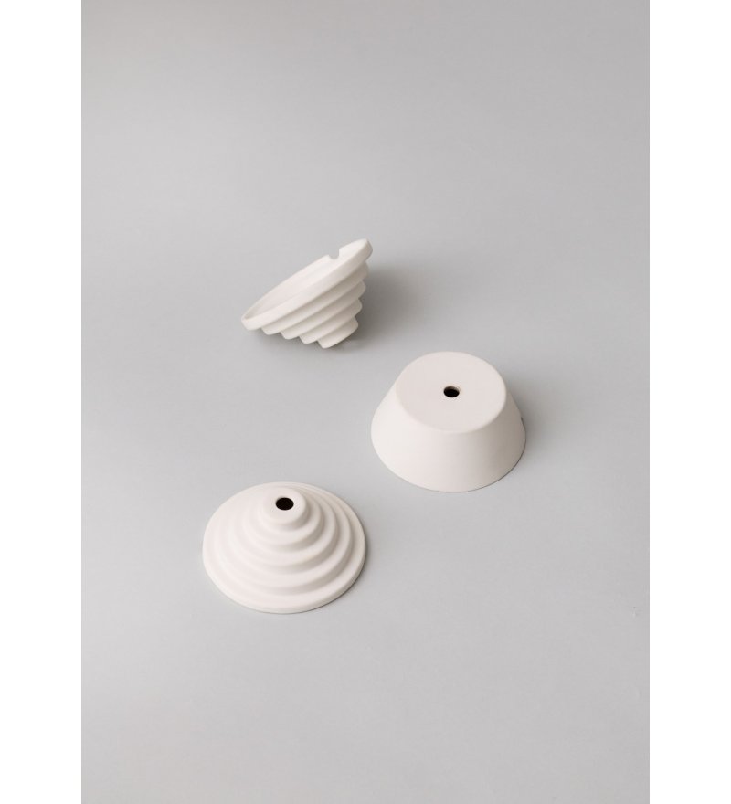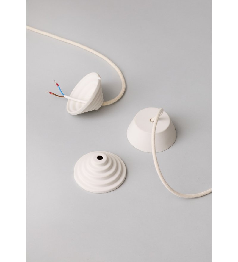 Dopracowany detal, który nadaje instalacji oświetleniowej spójny i wyrafinowany wygląd! Ceramic Ceiling Rose to minimalistyczna podsufitka, która stanowi elegancką i trwałą alternatywę dla standardowych, plastikowych rozwiązań. Wykonana jest z nieszkliwionej białej porcelany o matowej, delikatnie fakturowanej powierzchni. Wprowadza do wnętrza spokojny, uporządkowany look. Każdy element powstaje indywidualnie – jest odlewany i wypalany osobno, dzięki czemu zyskuje subtelne różnice w strukturze i wykończeniu, podkreślające naturalność materiału. Podsufitka jest dostępna w dwóch wariantach, została zaprojektowana tak, aby idealnie przylegać do sufitu i estetycznie maskować miejsce wyprowadzenia kabla.