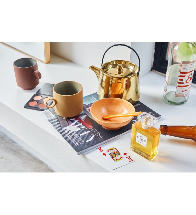Odważny i minimalistyczny? To możliwe, dzięki kolekcji ceramiki HK Living w śmiałych kolorach i prostych kształtach. Takie połączenie tworzy wyjątkowe ucieleśnienie eklektycznej mieszanki zastawy stołowej, do wszystkich wnętrz stworzonych z miłości do siebie i innych domowników. Prosty kubek z ciekawym uchem dobrze prezentuje się zarówno na blatach kuchennych, jak i stolikach kawowych.