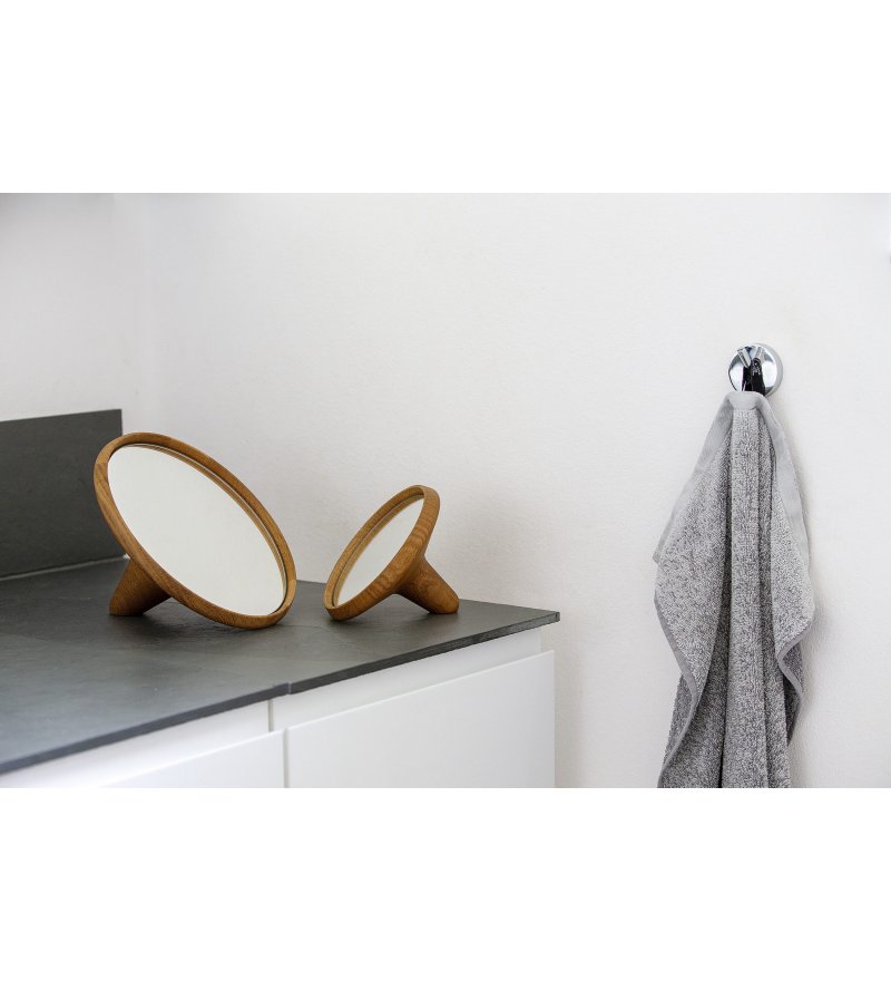 Satellite Mirror to proste i piękne lustro z drewna dębowego. Zostało zaprojektowane przez Christoffera Skjøtta w 2014 roku i jest dostępne w dwóch rozmiarach. Satellite Mirror to estetyczne lustro zarówno pod względem kształtu, jak i wyrazu. Ponadto Satellite ma tę wyjątkową zaletę, że można je łatwo przenosić. W ten sposób możesz wybrać, gdzie chcesz nakładać makijaż, nie jesteś przywiązana do jednego miejsca. Lustra Satellite to oczywisty wybór do sypialni i łazienki oraz na korytarz jako dekoracja.