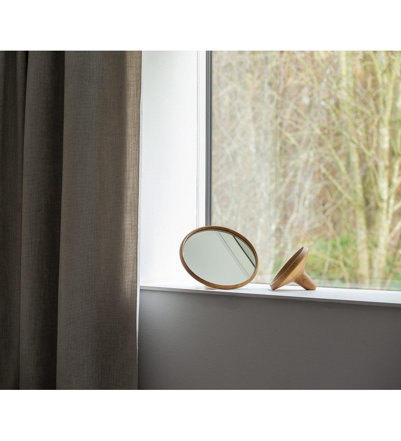 Lustro Satellite wykonane jest z drewna dębowego. Ze względu na ręczną produkcję każdy egzemplarz może różnić się np. usłojeniem drewna.