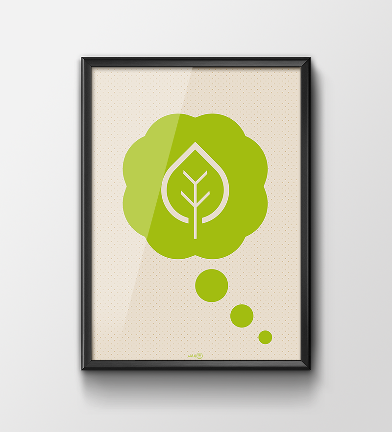 Plakat graficzny 'Think green' to zabawa kolorem, formą i treścią. Dzięki kolorowym grafikom Twoje przestrzenie nabiorą indywidualnego charakteru i pozwolą Ci wyrazić siebie.