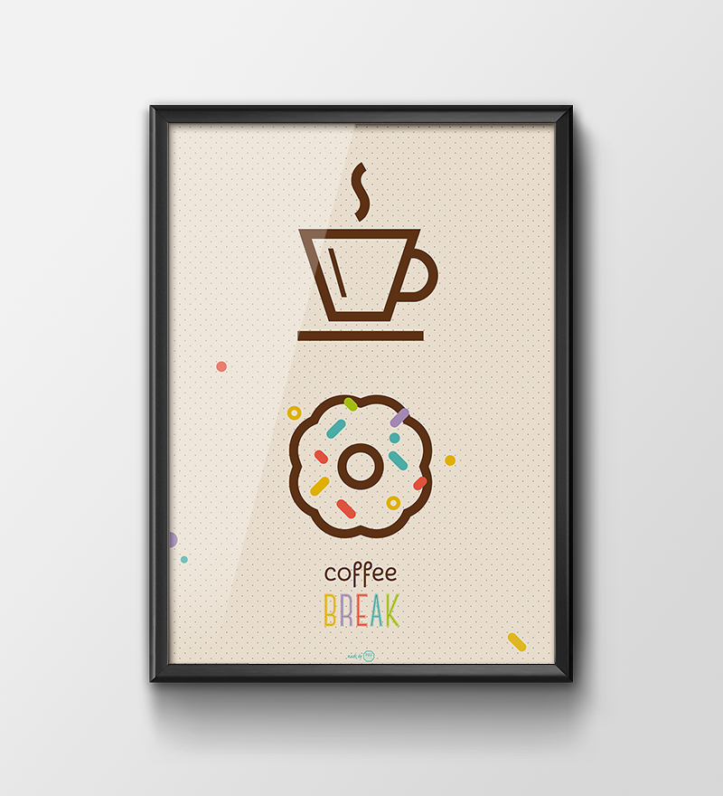 Plakat graficzny 'Coffee break' to zabawa kolorem, formą i treścią. Dzięki kolorowym grafikom Twoje przestrzenie nabiorą indywidualnego charakteru i pozwolą Ci wyrazić siebie.