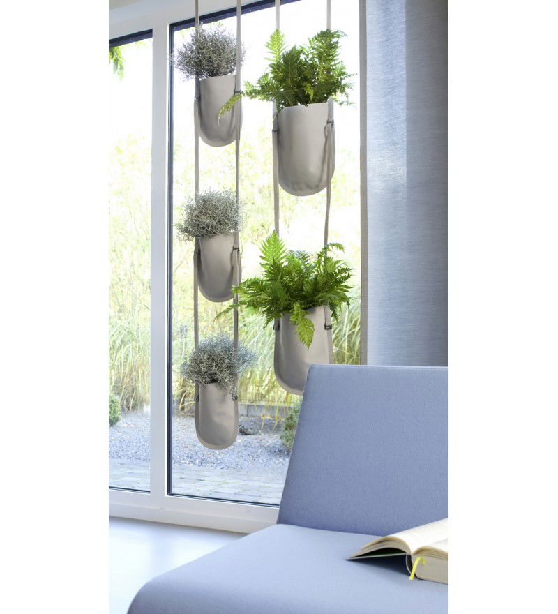 Kolekcja wiszących donic z serii Urban Garden to nowy sposób na upiększenie domu. Kochasz przyrodę i zieleń? Patrick Nadeau zaprojektował dekoracyjne i nowoczesne donice, które pozwolą Ci w pomysłowy sposób ozdobić różne pomieszczenia ciekawymi roślinami. W dolnej części nad kieszenią znajdują się dwie poprzeczki, które świetnie uwydatniają piękno roślin takich jak np. bluszcz. Do poprzeczki można dokupić kolejną donicę i zyskać dodatkowe miejsce na kwiaty. Doniczki wyróżniają się bardzo funkcjonalną i estetyczną konstrukcją. Składają się z sakwy zewnętrznej wykonanej z technologicznie zaawansowanego materiału, sakwy wewnętrznej z nieprzepuszczającego dla wody materiału, urządzenia do pomiaru wilgotności oraz pasów do zawieszenia zapinanych na rzep. Sprzyjają rozwojowi roślin i nie zajmują dużo miejsca- fantazyjnie dodają zielonego uroku!