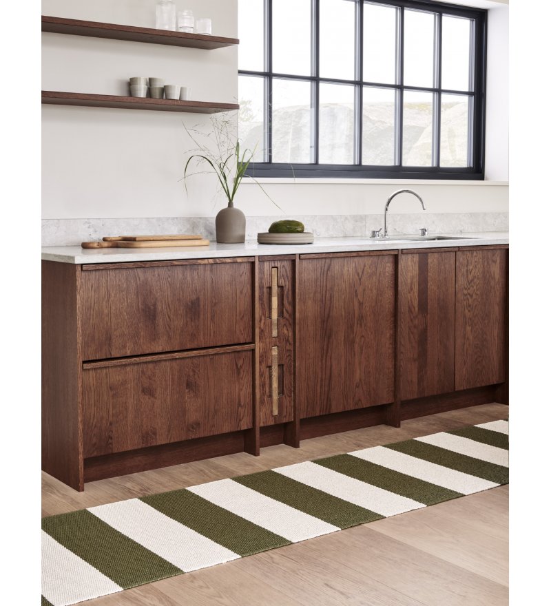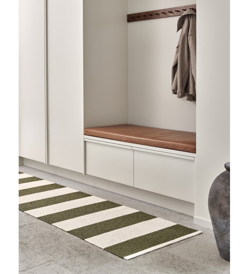 Dywany z kolekcji BOB z charakterystycznymi szerokimi paskami wykonane są z najwyższą precyzją, aby pokazać niezwykły materiał i jego nieskończone możliwości. Każdy pas jest misternie utkany, podkreślając trwałość dywanu i jego ponadczasowy urok. W 2024 roku BOB został odświeżony nowymi kolorami i podwójnie pobszytymi dwiema krawędziami. Odświeżona kompozycja (początkowy i kończący pasek są w tym samym kolorze) sprawia, że całość wygląda jeszcze piękniej.
