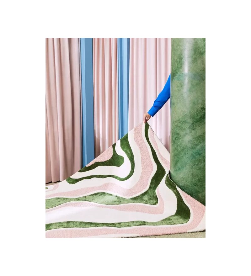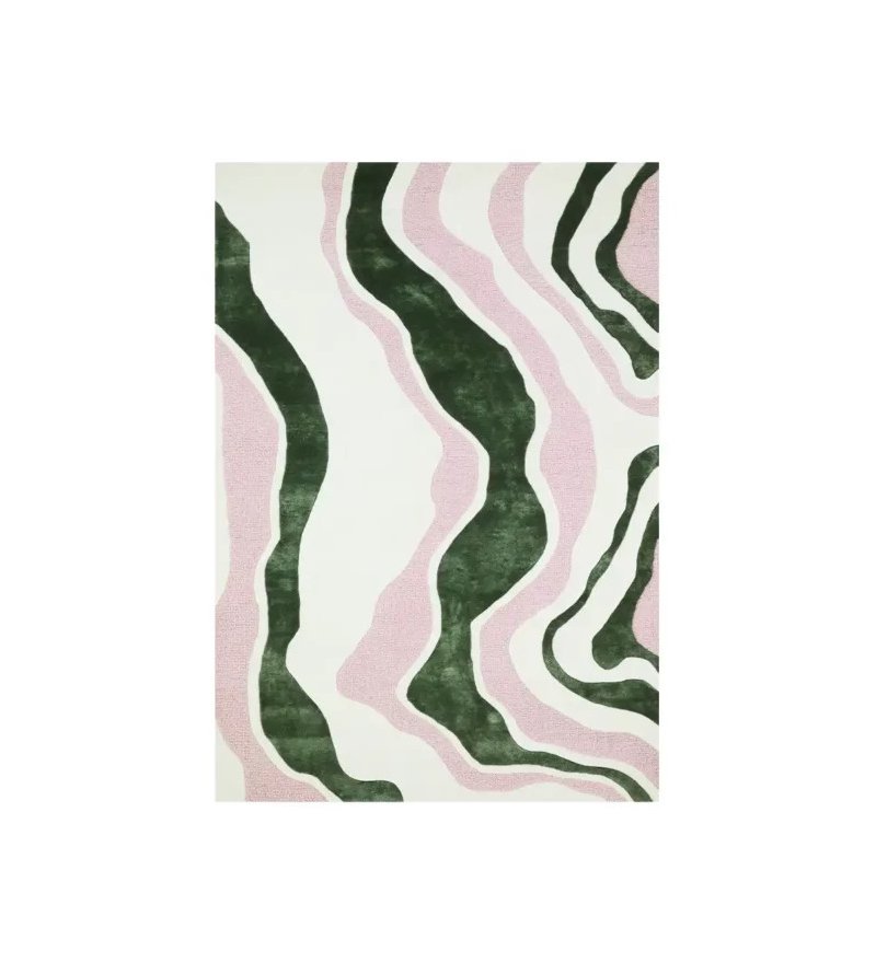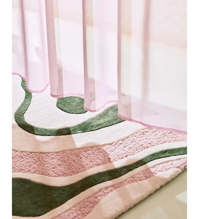 Virta to ekskluzywny dywan, w którym biała i różowa wełna harmonijnie współgra z błyszczącym zielonym tencelem. Stworzony z najwyższej jakości wełny i tencelu, płynnie łączy białe oraz jasnoróżowe pętelkowe runo z zielonymi akcentami, oferując ciekawą mieszankę faktur i barw. Tencel dodaje subtelnego, luksusowego połysku, który podkreśla piękno kolorów dywanu. Jego podstawa wykonana z bawełny zapewnia trwałość i wytrzymałość.