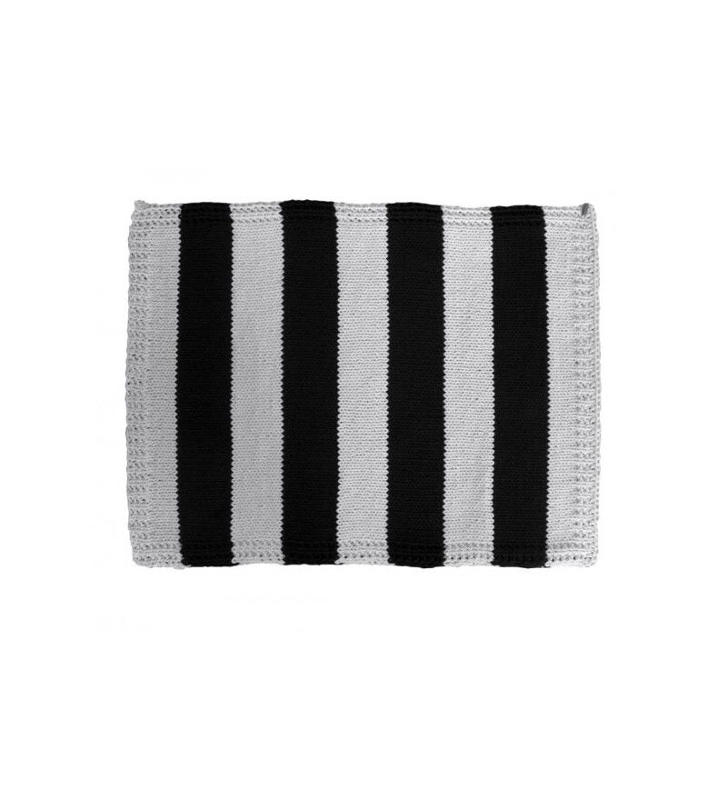 Ręcznie dziergany dywanik z grubego bawełnianego sznurka (0,5cm). Wykonany na drutach z ok. 500 m sznurka. Kolorystyka klasycznej czerni i bieli w ciekawym zworze pasów.