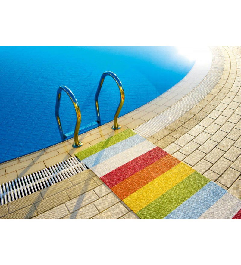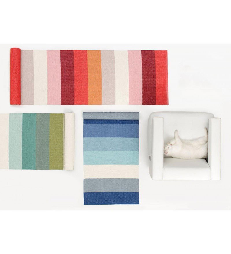 Kolekcja dywanów MOLLY może być użytkowana z obu stron. Wzór kolorowych pasów jest powtarzalny co 1 metr długości dywanu.