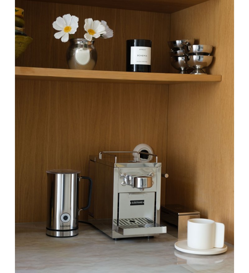 Sjöstrand Espresso Machine to kwintesencja skandynawskiego podejścia do designu – prosta forma, ponadczasowy styl i dbałość o każdy detal. Wykonany z wysokiej jakości stali nierdzewnej, ten designerski ekspres do kawy na kapsułki nie tylko zachwyca wyglądem, ale również oferuje wyjątkową jakość parzenia. Jego elegancka obudowa doskonale komponuje się z nowoczesnymi wnętrzami kuchni, biur i apartamentów, będąc jednocześnie funkcjonalnym urządzeniem codziennego użytku.