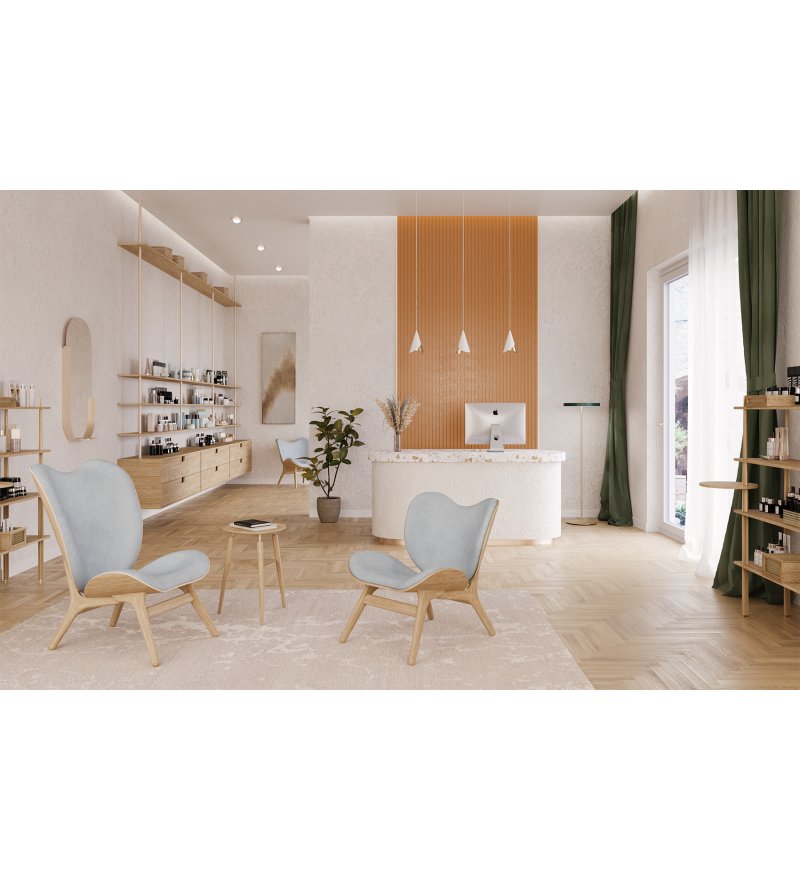 Wysoki fotel tapicerowany 'A Conversation Piece Tall' z kolekcji duńskiej marki UMAGE. Zaprojektowany z myślą o wygodzie użytkowania w nowoczesnych, multifunkcjonalnych mieszkaniach i obiektach użyteczności publicznej. Dzięki podwyższonemu oparciu oraz szerokiemu i rozłożystemu siedzisku fotel zapewnia bardzo wysoki komfort. Ideą projektanta było podążanie za zmieniającymi się sposobami użytkowania mebli. Takie rozwiązanie umożliwia siedzenie w fotelu z "podwiniętymi" nogami, "po turecku" - jednym słowem jak komu najwygodniej.