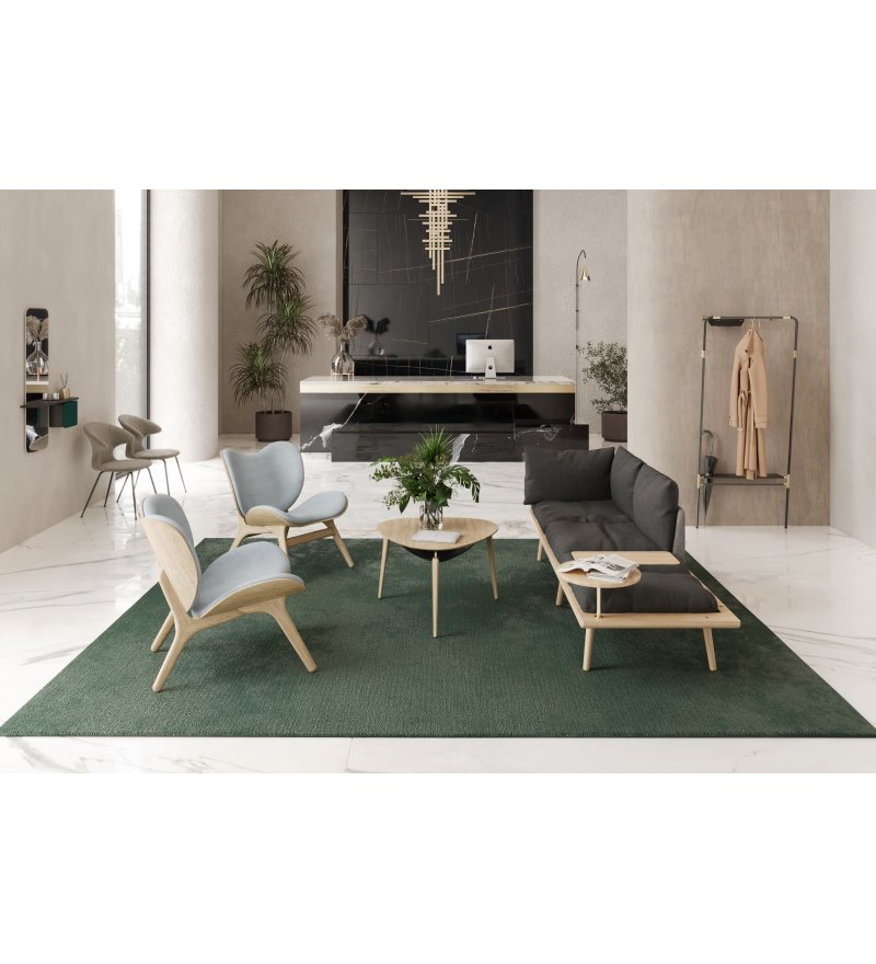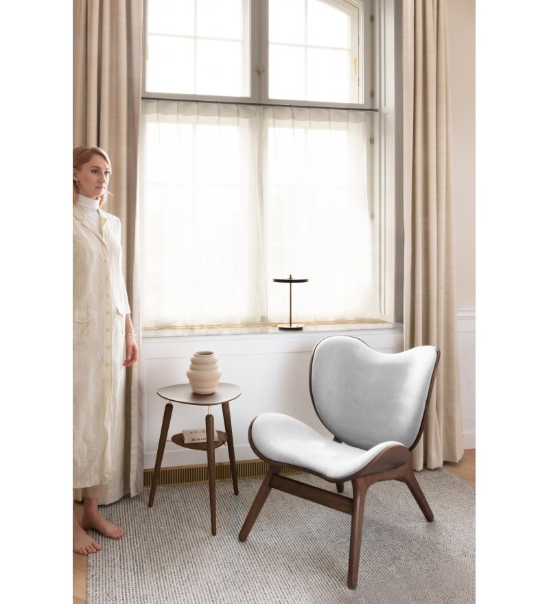 Niski fotel tapicerowany 'A Conversation Piece' duńskiej marki UMAGE. Zaprojektowany z myślą o wygodzie użytkowania w nowoczesnych, multifunkcjonalnych mieszkaniach i obiektach użyteczności publicznej. Pomimo dość kompaktowych wymiarów, fotel zapewnia wysoki komfort dzięki szerokiemu i rozłożystemu siedzisku. Ideą projektanta było podążanie za zmieniającymi się sposobami użytkowania mebli. Takie rozwiązanie umożliwia siedzenie w fotelu z "podwiniętymi" nogami, "po turecku" - jednym słowem jak komu najwygodniej.
