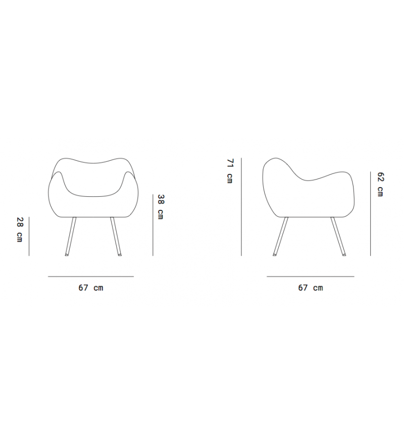 Rozmiar: wysokość 71 cm, szerokość 67 cm, głębokość 67 cm, wysokość siedziska 38 cm