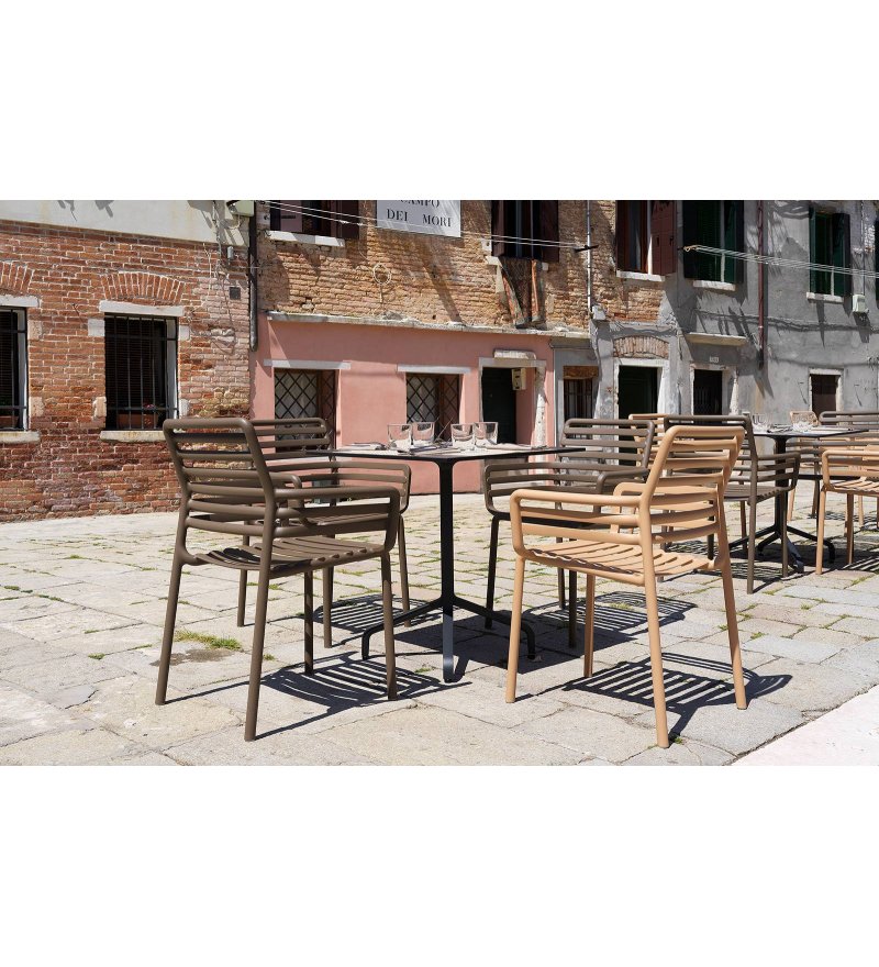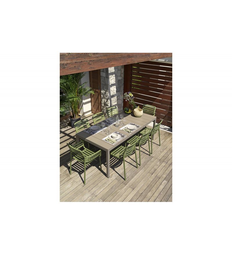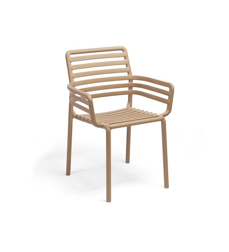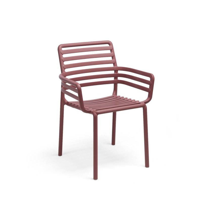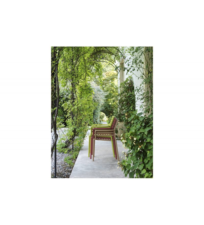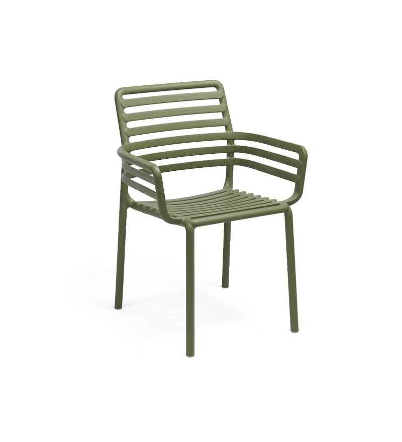 Lekki i ergonomiczny fotel Doga marki Nardi wykonany z żywicy z włókna szklanego przeznaczony jest do użytku na zewnątrz. Znakomicie sprawdzi się do czytania, konwersacji czy spożywania posiłków w ogrodzie, oranżerii bądź na tarasie. Minimalistyczny i zarazem spójny kształt fotela dostępny jest w wielu wersjach kolorystycznych. Charakterystyczne paski wraz z przestrzeniami pomiędzy nimi nadają całości interesujący look. Fotele można sztaplować, czyli składać jeden na drugim. Z tą opcją magazynowanie jest znacznie prostsze. Doga łatwo się dezynfekuje. Do fotela można także dołączyć dedykowaną poduszkę, która jeszcze bardziej zwiększa komfort użytkowania. Sam fotel za sprawą zastosowanej żywicy, może być poddany recyklingowi.