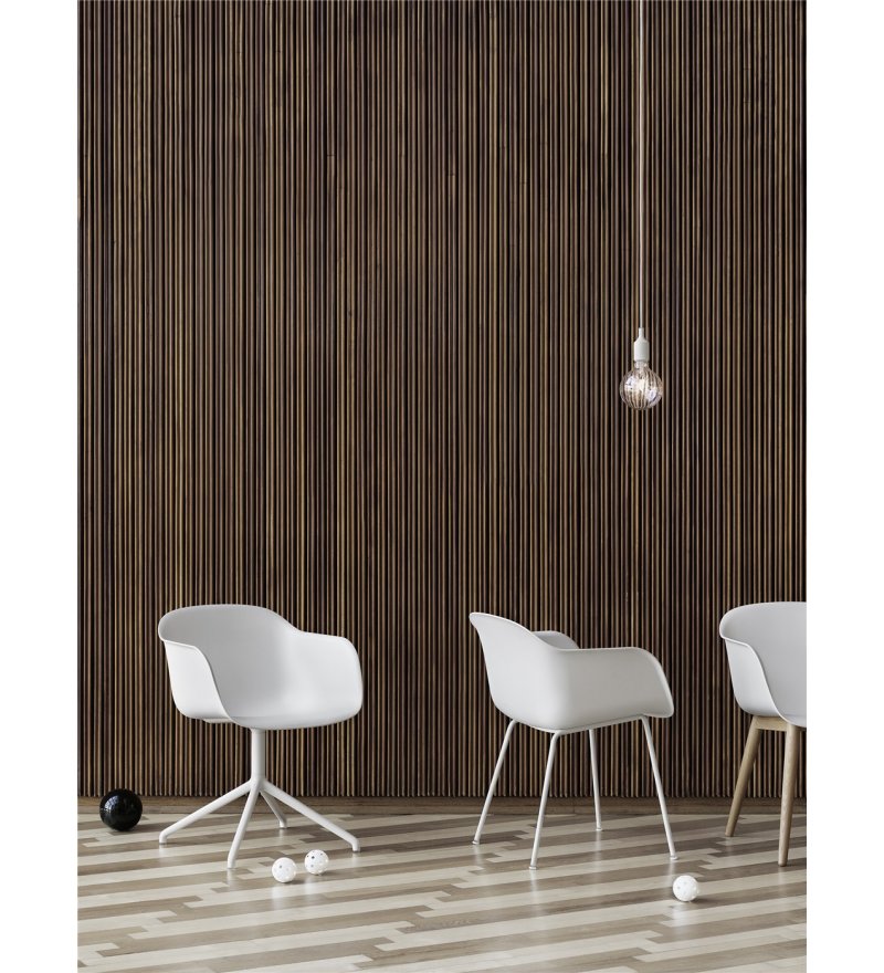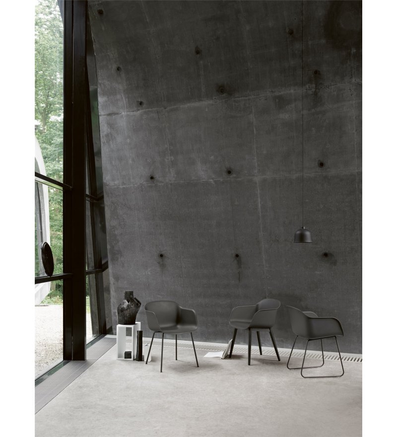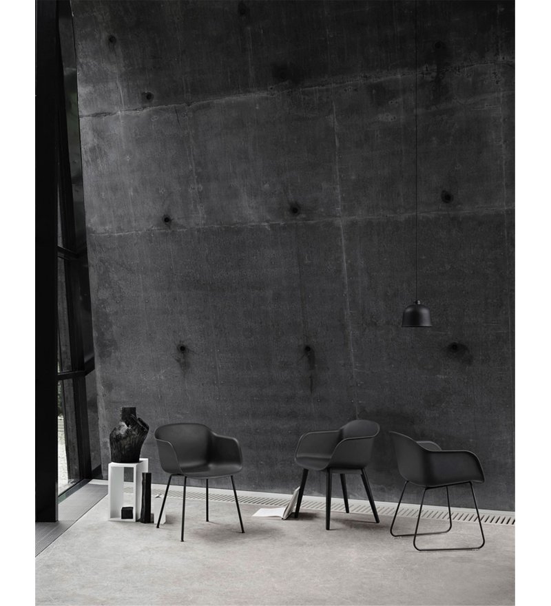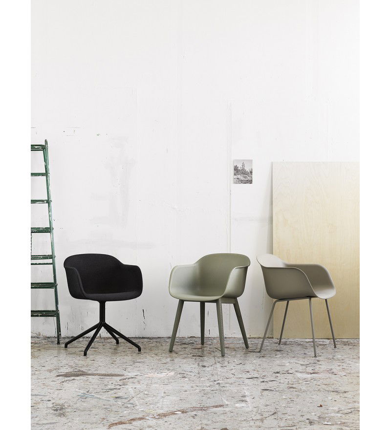 Fotel Fiber Armchair marki Muuto wyróżnia się innowacyjnym tworzywem powstałym z mieszanki polipropylenu (min. 75%- z których co najmniej 80% pochodzi z recyklingu) oraz drewna z certyfikatem FSC (maksymalnie 25% mieszanki). Z daleka oparcie wygląda na wykonane z gładkiego tworzywa sztucznego, ale z bliska widoczne są drewniane włókna. Nadają one fotelowi zupełnie nowy, niepowtarzalny charakter. Każdy detal, linia i kształt zostały zaprojektowane tak, aby przy minimum miejsca uzyskać maksimum komfortu. Fotel cechuje skandynawski minimalizm. Idealnie sprawdzi się zarówno w biurze, jadalni, salonie, jak i w pomieszczeniach użyteczności publicznej takich jak stołówka czy sala konferencyjna.
