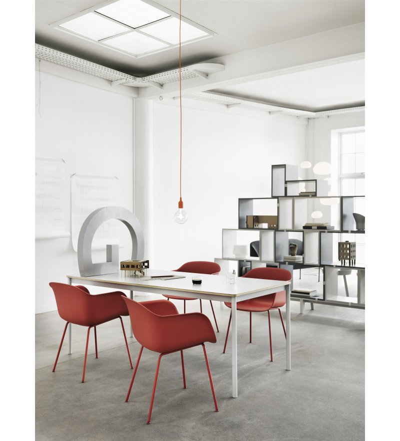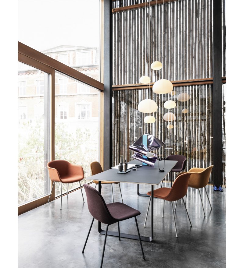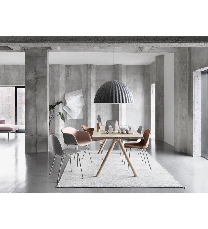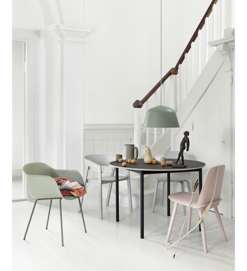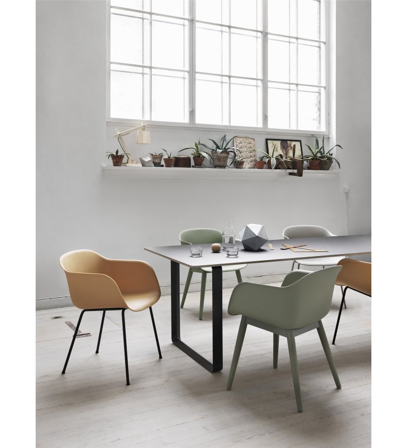 Fotel Fiber Armchair marki Muuto wyróżnia się innowacyjnym tworzywem powstałym z mieszanki polipropylenu (min. 75%- z których co najmniej 80% pochodzi z recyklingu) oraz drewna z certyfikatem FSC (maksymalnie 25% mieszanki). Z daleka oparcie wygląda na wykonane z gładkiego tworzywa sztucznego, ale z bliska widoczne są drewniane włókna. Nadają one fotelowi zupełnie nowy, niepowtarzalny charakter. Każdy detal, linia i kształt zostały zaprojektowane tak, aby przy minimum miejsca uzyskać maksimum komfortu. Fotel cechuje skandynawski minimalizm. Idealnie sprawdzi się zarówno w biurze, jadalni, salonie, jak i w pomieszczeniach użyteczności publicznej takich jak stołówka czy sala konferencyjna.