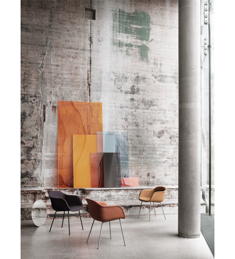 Fotel Fiber Armchair marki Muuto wyróżnia się innowacyjnym tworzywem powstałym z mieszanki polipropylenu (min. 75%- z których co najmniej 80% pochodzi z recyklingu) oraz drewna z certyfikatem FSC (maksymalnie 25% mieszanki). Dla większej wygody fotel został pokryty wysokej jakości tkaniną firmy Kvadrat. Każdy detal, linia i kształt zostały zaprojektowane tak, aby przy minimum miejsca uzyskać maksimum komfortu. Fotel cechuje skandynawski minimalizm. Idealnie sprawdzi się zarówno w biurze, jadalni, salonie, jak i w pomieszczeniach użyteczności publicznej takich jak stołówka czy sala konferencyjna.