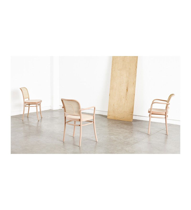 Wypełnienie siedziska i oparcia stanowi ręcznie wykonana plecionka. Nowocześnie zaprojektowany model łączy w ten sposób dwie unikalne i zanikające technologie.