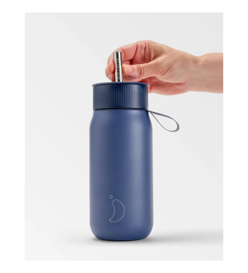 Kubek termiczny 2w1 ze słomką Chilly's - 750ml, granatowy