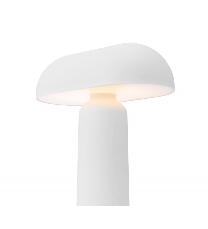 Przyciąga funkcjonalnością, fantastycznym designem oraz jakością wykonania! Zaprojektowana przez Simona Legalda estetyczna lampa Porta składa się z wydłużonego klosza i cylindrycznej podstawy. Organiczne, zaokrąglone kształty nadają całości miękki i przyjemny wyraz. Za sprawą przemyślanej konstrukcji, lampę można swobodnie stosować w przestrzeniach kompaktowych. Po obróceniu o 90 stopni klosz lampy zajmuje mniej miejsca, dzięki czemu zmieści się na parapecie, małym stoliku kawiarnianym czy półce. Bezprzewodowość i lekkość sprawiają, że lampę łatwo się przenosi. Pod podstawą znajduje się niewielka przegroda z portem USB. Dyskretnie umiejscowiony kabel umożliwia komfortowe naładowanie, również podczas użytkowania lampy. Silikonowy pierścień stabilizuje podstawę. Porta wyposażona jest w zintegrowany, energooszczędny LED. Za sprawą czułego na dotyk ściemniacza można ustawić 1 z 3 poziomów natężenia światła: 100%, 70% i 40%. W zależności od zastosowanego poziomu żywotność baterii wynosi odpowiednio 8, 24 lub 90 godzin. Do lampy dołączony jest kabel ładujący USB o długości 1 metra. Do wyboru mamy 3 wersje kolorystyczne.