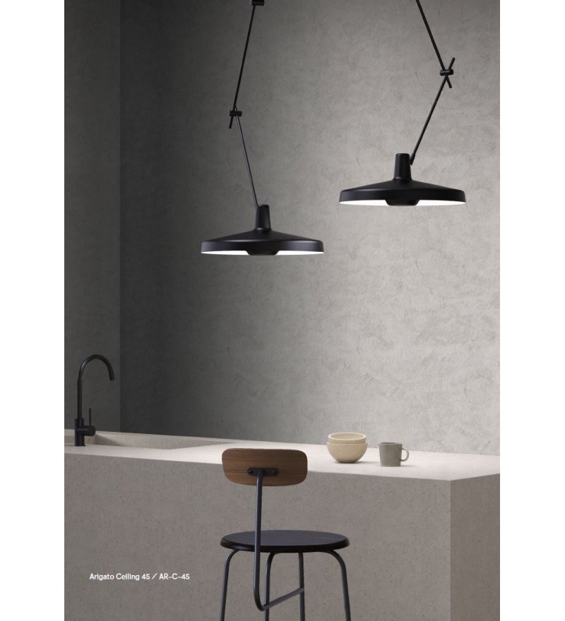 Lampa sufitowa ARIGATO CEILING 45 GRUPA pochodzi z najnowszej kolekcji Arigato 45, w której klosz został powiększony do średnicy 45 cm, a ramiona lampy znacznie wydłużone. To sprawia, że lampa Arigato Ciling 45 ma niemal 140 cm zasięgu ramienia, dając nieograniczone możliwości aranżacyjne.