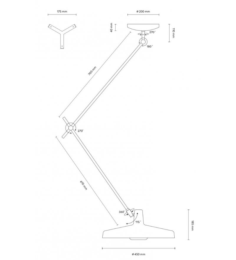 Wersja Arigato Ceiling Long posiada wydłużone ramiona w stosunku do Arigato Ceiling.