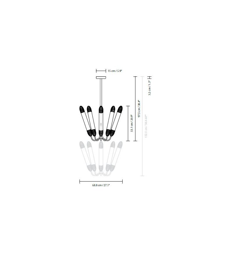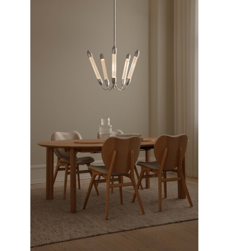 Żyrandole Lemon Squeeze UMAGE posiadają 5 kloszy. Ramię lampy ma teleskopowo regulowaną wysokość, co umożliwia dopasowanie rozmiaru lampy do wnętrza i miejsca montażu.