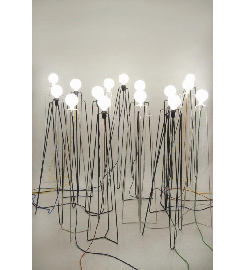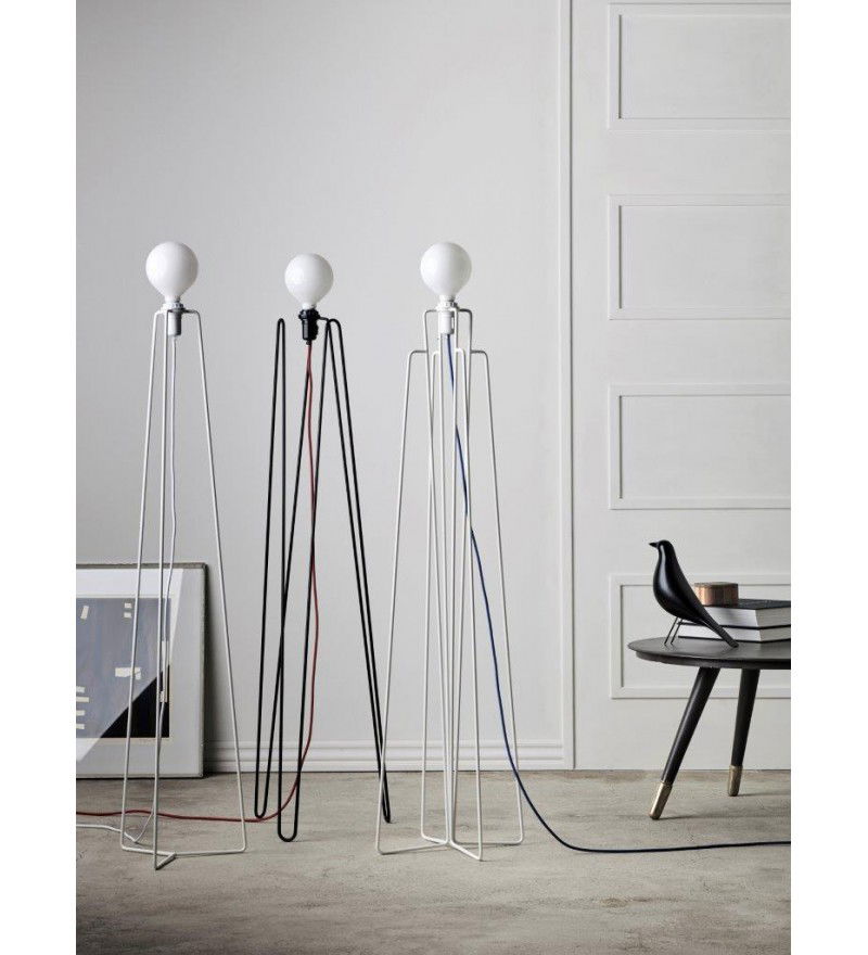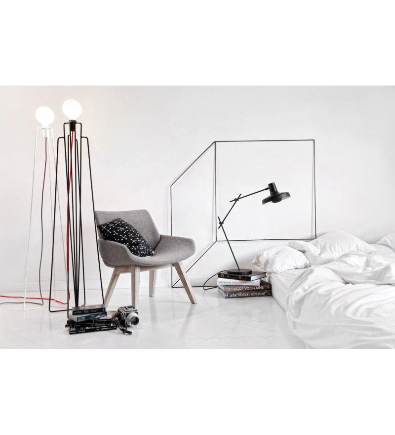 Minimalistyczna, prosta w formie lampa podłogowa MODEL 3 GRUPA zaprojektowana została przez chorwackie biuro projektowe Grupa Products. Jej geometryczną podstawę wykonano ze stalowych elementów pomalowanych na jeden z dwóch kolorów do wyboru: biel lub czerń. Indywidualnego charakteru każdej lampie daje możliwość doboru przewodu w jednym z kilku kolorów.