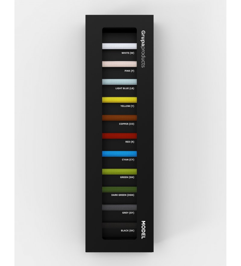 Kolor przewodu w oplocie: biały (W), bladoróżowy (P), błękitny (LB), musztardowy (M), miedziany (CP), czerwony (R), cyan (CY), zielony (GN), ciemnozielony (DGN), szary (GY), czarny (BK) - do wyboru (patrz zdjęcie wzornika)