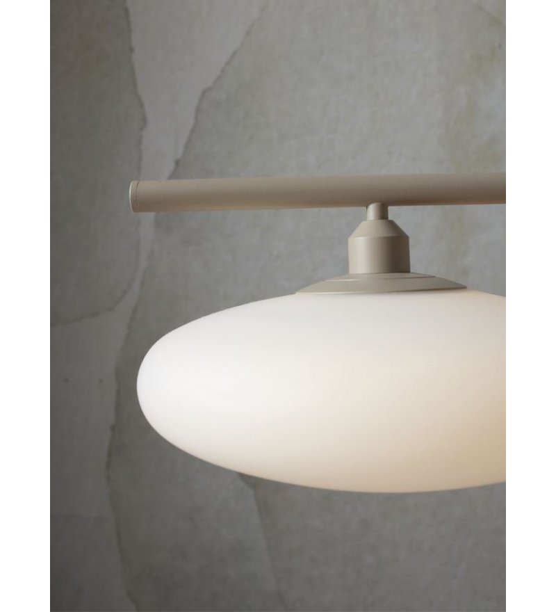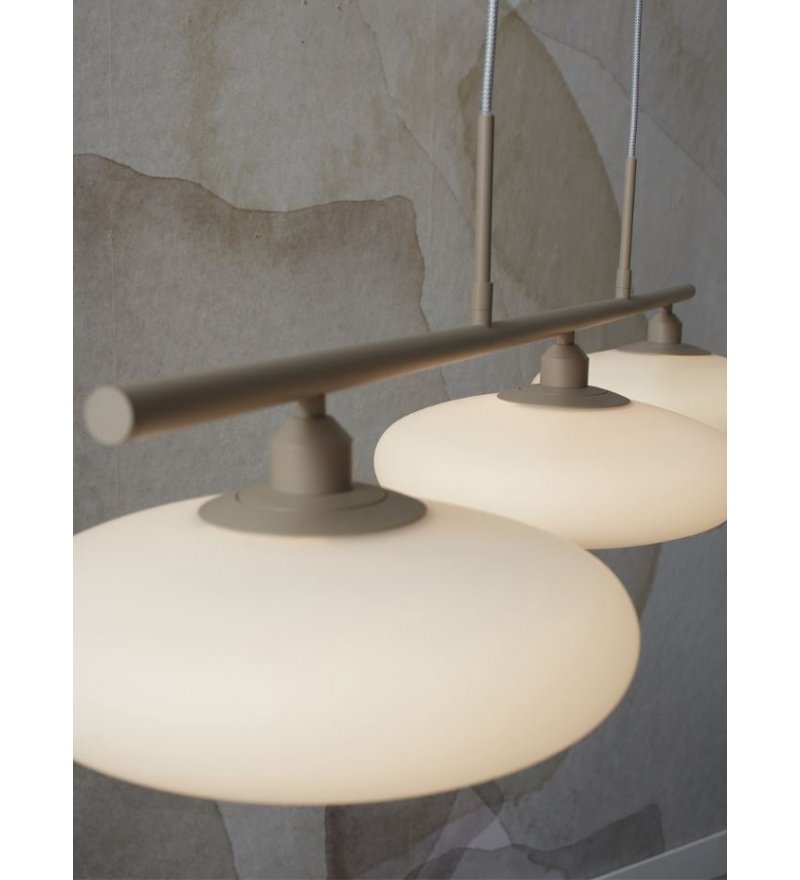 Lampa wisząca Sapporo marki It's About RoMi to przykład nowoczesnej elegancji w najczystszej formie. Zaprojektowana z myślą o współczesnych wnętrzach, zachwyca prostotą linii i subtelną estetyką. Trzy matowe klosze z opalowego szkła, zawieszone na długiej, żelaznej belce o szerokości 115 cm, tworzą harmonijną kompozycję, idealnie wpisującą się w przestrzenie jadalni, kuchni lub salonu.