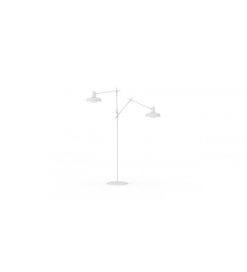 Lampa podłogowa ARIGATO 2 GRUPA to siła prostoty i wyjątkowa funkcjonalność. Jej minimalistyczna forma wykonana została ze stalowych ramion i aluminowego klosza. Całość pomalowano proszkowo na kolor matowej bieli. Wnętrze klosza jest białe i ciekawie rozprasza światło żarówki. Dzięki zastosowaniu dodatkowego elementu osłaniającego żarówkę uzyskano rozproszone, jasne światło bez efektu oślepienia. Konstrukcja lampy umożliwia regulację ustawienia klosza oraz ramion na każdym ich łączeniu. Zastosowanie 2 niezależnych ramion dało nie tylko ciekawy wizualnie efekt - przesądza także o wyjątkowo praktycznym aspekcie tej wersji Arigato.