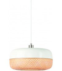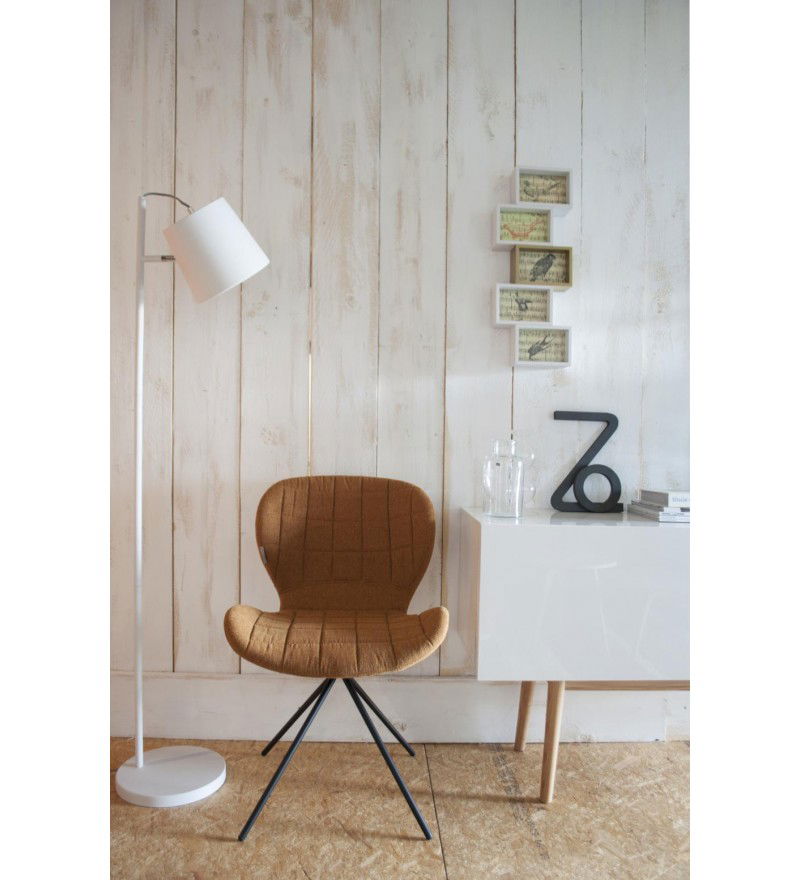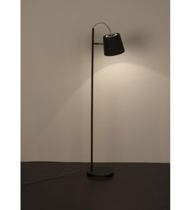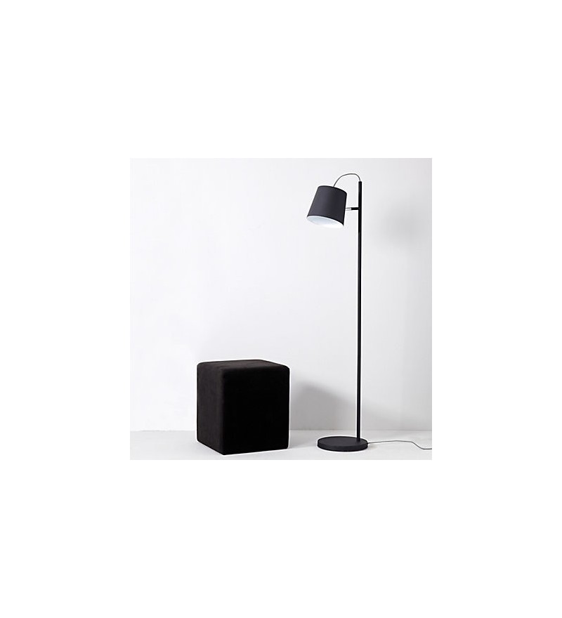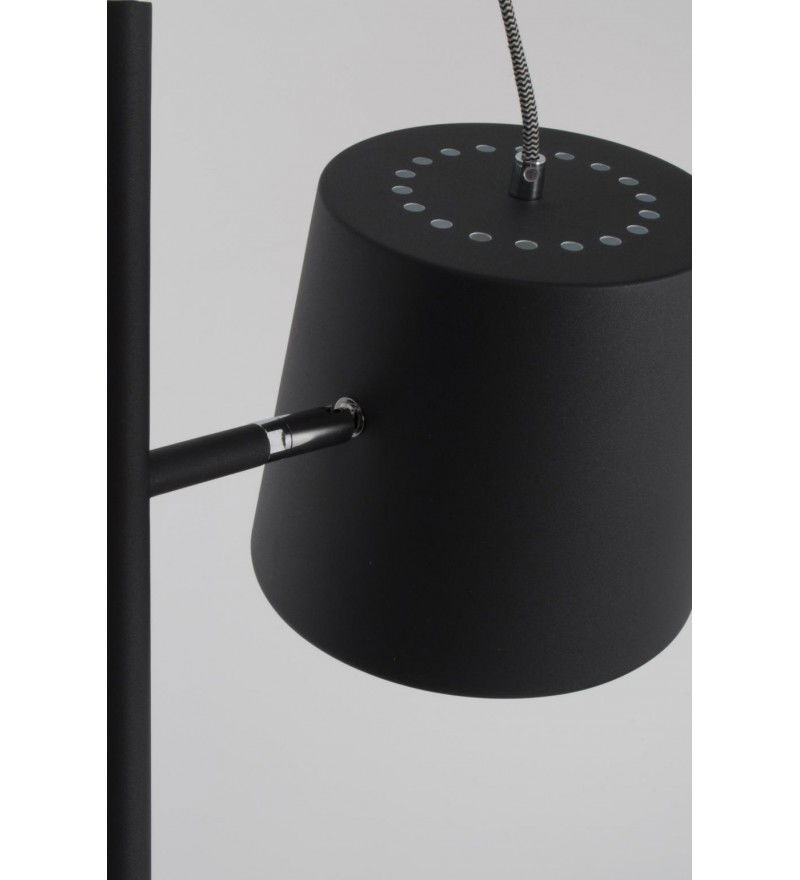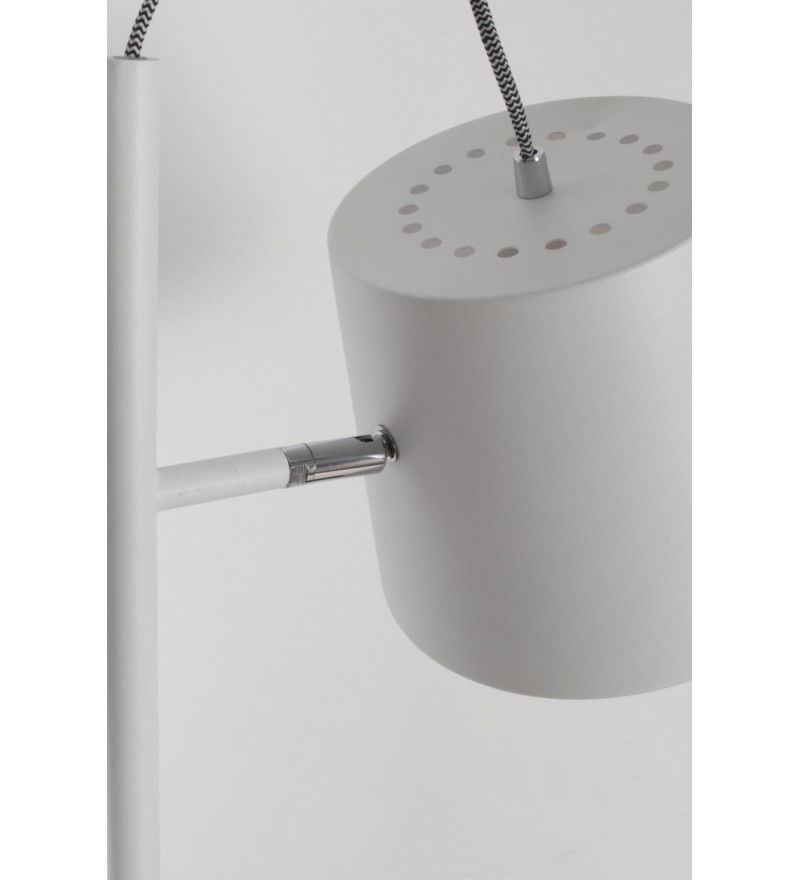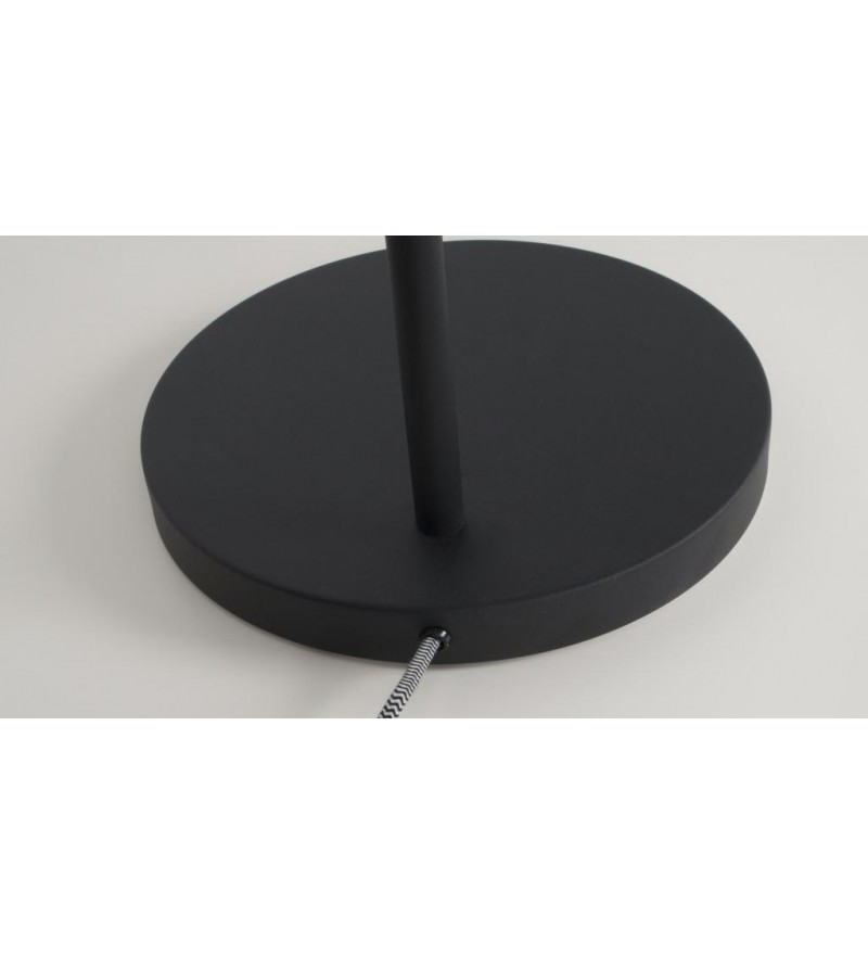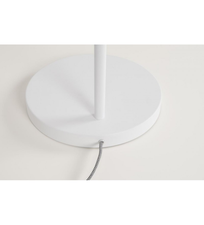Lampa stojąca z obracanym kloszem. Wykonana z malowanego metalu w kolorze matowej bieli lub czerni.