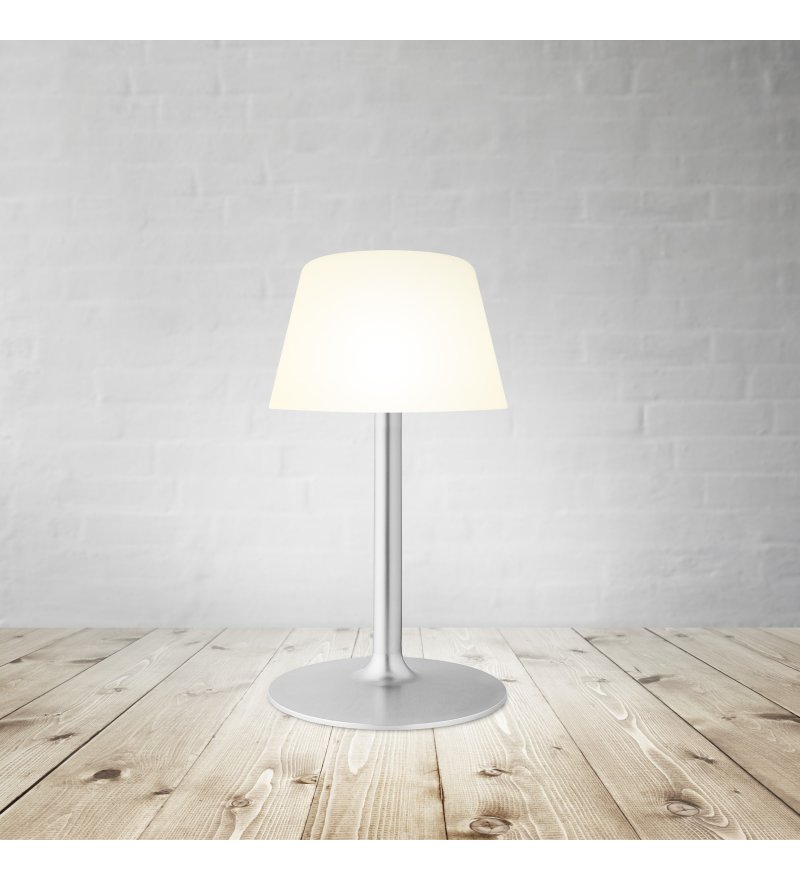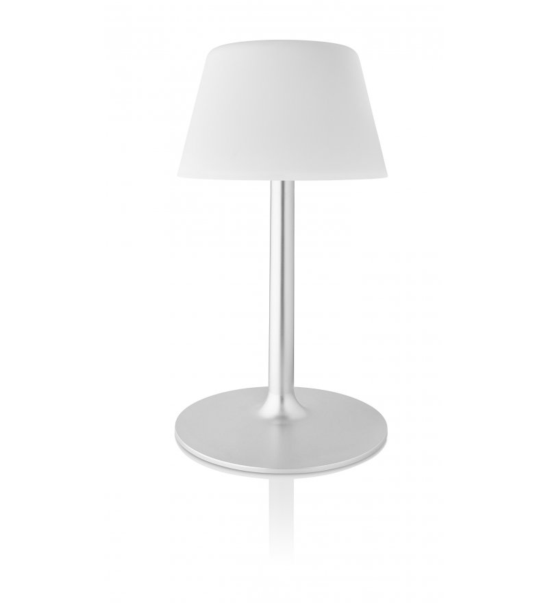 SunLight Lounge to oryginalna energooszczędna lampa, którą wyróżnia dekoracyjny charakter, odporność na wszystkie warunki pogodowe i bezprzewodowe zasilanie za pomocą ukrytych paneli słonecznych. Zapewnia nastrojowy blask, który świetnie sprawdzi się na ogrodowym stole, tarasie czy balkonie.