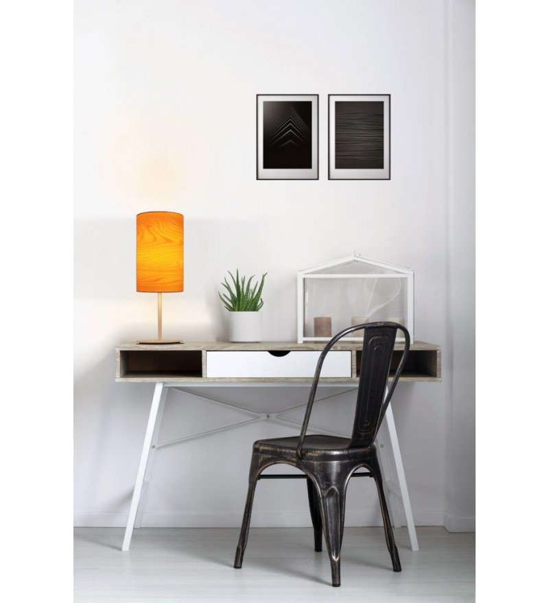 Materiał: drewno - naturalny, ręcznie dobierany na każdą lampę fornir klonowy grubości 0,5 mm, metal