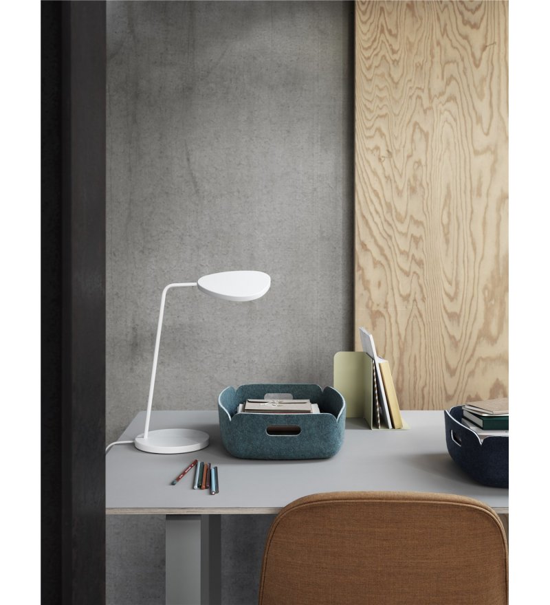 Wersja stołowa lampy Leaf marki Muuto, która urzeka swą subtelną prostotą oraz niezaprzeczalnym pięknem. Choć projekt jest minimalistyczny i prosty, to miękka asymetryczna geometria nadaje lampie organiczny i przyjazny wygląd. W zależności od kąta patrzenia, jak i ustawienia klosza, lampa będzie subtelnie zmieniać swój kształt nawiązując do zachowania liści ustawicznie zmieniających swoje ustawienie w stosunku do słońca. Inspiracja naturą w pełnym wymiarze!