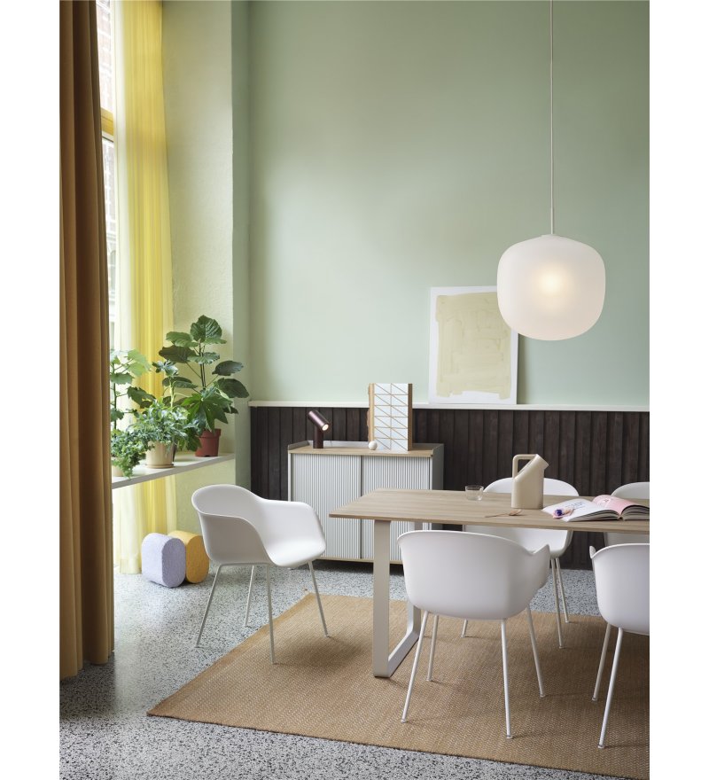 Kolekcja lamp Rime Muuto obejmuje produkty w czterech kolorach i czterech rozmiarach. Rime może być stosowany samodzielnie lub w liniowych formacjach, a także w nowoczesnych, zabawnych klastrach.
