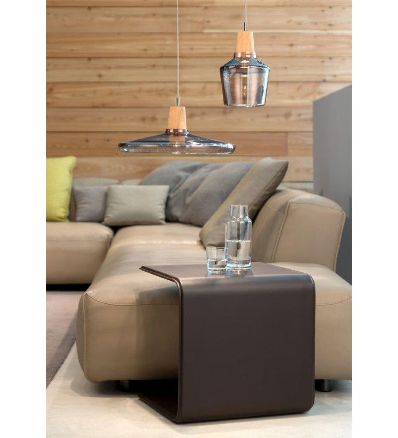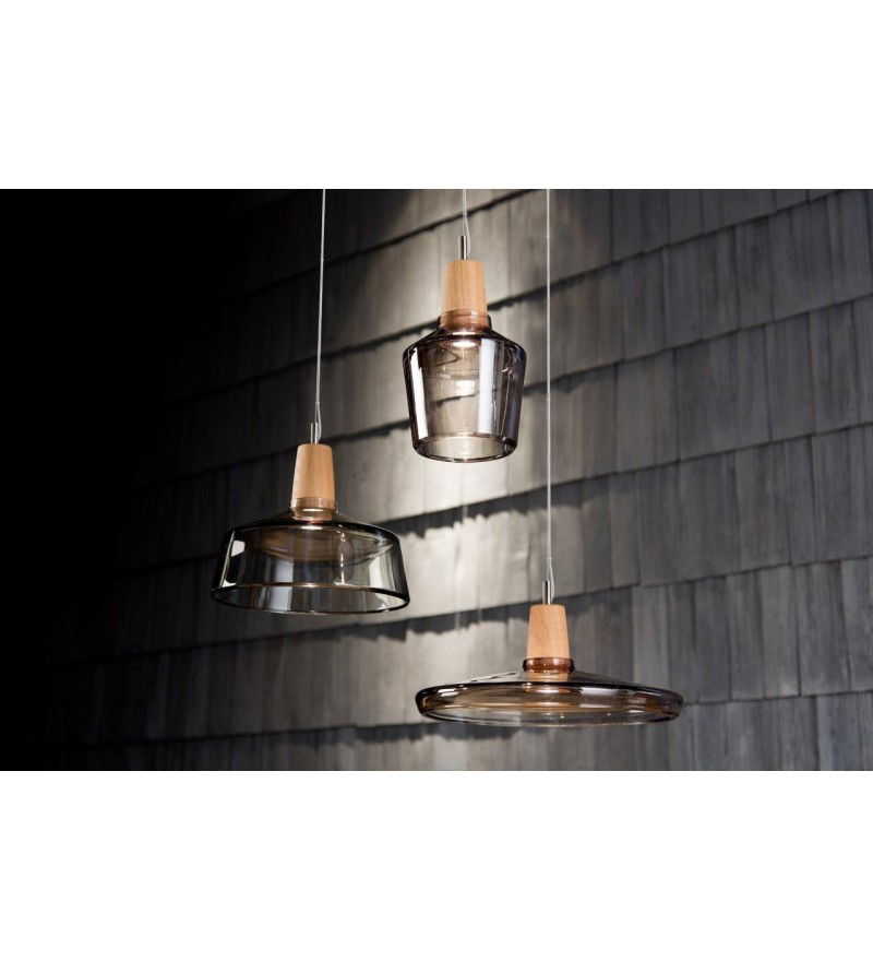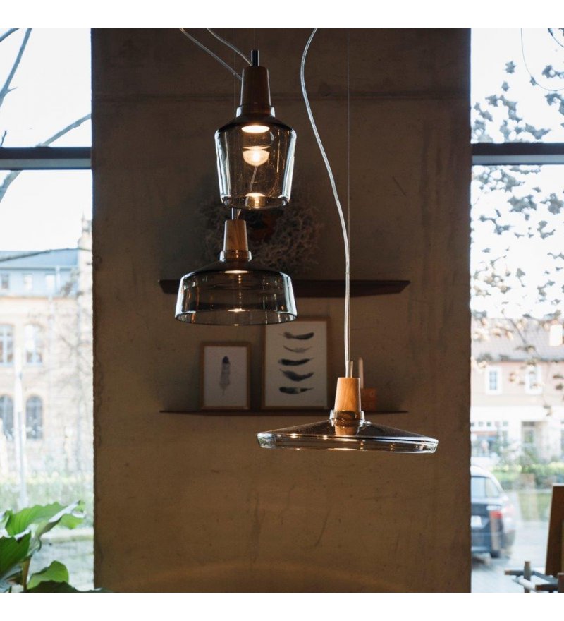 Wszystko w oparciu o prostą zasadę: szkło podparte jest na drewnianym stożku, w którym umieszczono żarówkę LED. Włączona lampa rozświetla sublelnie szklany klosz kierując jednak światło punktowo, nie oślepiając.