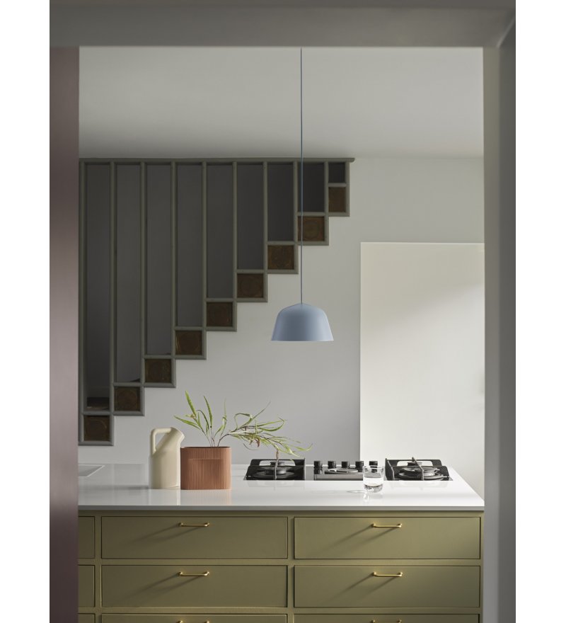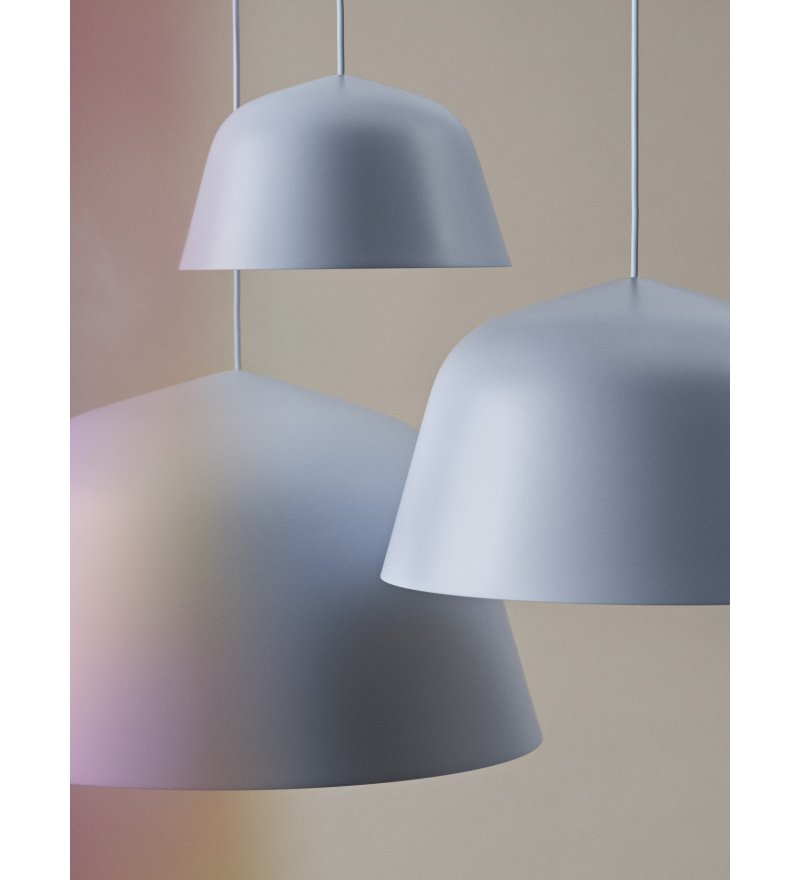 Lampa Ambit Muuto to ponadczasowa i uniwersalna forma o silnym charakterze. Klosz lampy wykonany jest z aluminium tradycyjnymi metodami - kształtowany za pomocą prasy ręcznej, następnie polerowany i wreszcie ręcznie malowany. Klosz dostępny jest w kilku kolorach i ma białe malowane wnetrze, które daje delikatny kontrast, zapewniając jednocześnie maksymalne światło emitowane przez lampę.