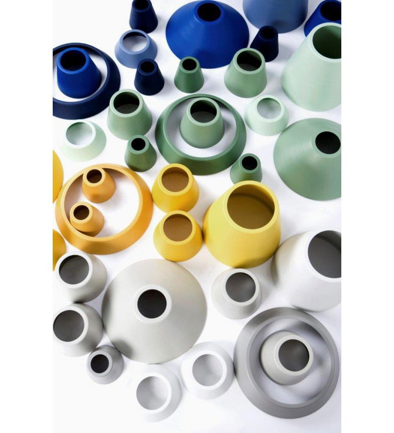 GONE FISHING z kolekcji ILI_ILI to modułowa lampa wykonana z ręcznie tłoczonego i malowanego proszkowo aluminium. Lampa zbudowana jest z 3 niezależnych elementów, które łączy się w ostateczny kształt za pomocą małych elementów mocujących wewnątrz klosza.